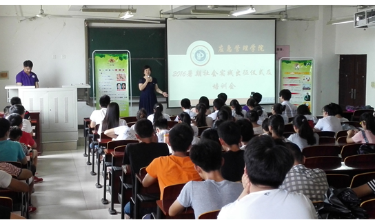 7月12日下午,太阳成集团tyc33455cc2016年暑期“三下乡”社会实践出征仪式在文科综合楼510举行。公司党委书记杨艳玲、“手正堂·益路同行”董事长赵丽霞、凤凰网实习记者刘果、学院团委书记刘蓝蓝、学工办主任于江和学院各实践团队指导教师、员工代表130余人参加了出征仪式。