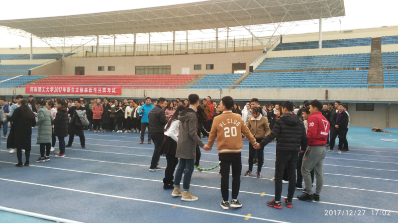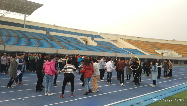 2017年12月27日下午五点,太阳成集团tyc33455cc2017级全体班委在新体育场内组织以共创团结班集体,打造优秀新石器为主题的集体趣味素质拓展活动。参加此次趣味活动的有2017级全体同学,由海波老师担任裁判。活动共分为三项,以班级为单位,采取竞赛的形式进行。