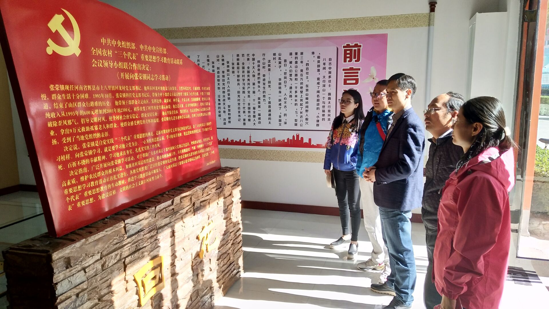 在回龙村,该公司党员干部通过参观回龙村张荣锁先进事迹展览馆,观看回龙村历史纪录片等形式,了解了张荣锁同志先进事迹和回龙村发展历程。特别是在观看回龙村历史纪录片过程中,大家为回龙村干部群众表现出的艰苦奋斗的当代愚公移山精神所震撼,不少同志忍不住潸然泪下,纷纷表示要深入学习“回龙精神”,立足自身岗位,做好本职工作,推动学院发展。随后,该公司党员干部沿着盘山公路而上,重走当年回龙村党总支书记张荣锁带领全村党员民兵历经千辛万苦修筑的蜿蜒8公里、腰缠9座峰梁的绝壁天路以及“S”型隧道,亲身体会当年回龙村人民当时修路的艰辛。该公司党员干部穿越挂壁公路,共话“回龙精神”,对张荣锁同志一心为公、顽强拼搏、无私奉献的精神深深感动,尤其是张荣锁致富不忘家乡,捐献百万家产,带领群众凿山修路,不计名利、不怕牺牲的高尚品质,触及思想、触及灵魂,深受教育。