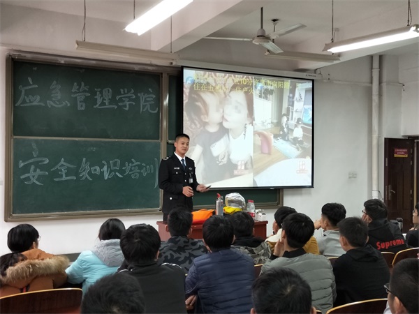讲座中,李银杰首先总结了今年上半年全国火灾伤亡数量以及财产损失情况,他通过一张张触目惊心的照片,一组组发人深省的视频,向同学们例举了大量现实生活中发生的火灾事故,现场气氛肃静而沉重。他提到,对于火灾事故,不能侥幸地把自己置身事外,每个人都必须了解消防知识,具备消防意识和会操作消防工具。随后,他从防火、灭火、逃生、自救等方面详细介绍了火灾的形成过程、自救逃生的方法和各种消防自救器材的用途、使用方法及注意事项等一系列消防安全知识,给同学们留下了深刻的印象。最后,他强调,消防员出警时间为十分钟左右,因此同学们一定要掌握火灾发生时的自救方法,以避免在火灾发生时因等待救援造成更大的伤害,希望同学们能认识到安全知识、安全意识、安全工具的重要性。讲座在全体同学的热烈的掌声中落下帷幕,同学们纷纷表示本次培训讲解生动实用,具有很强的感染力,受益匪浅。