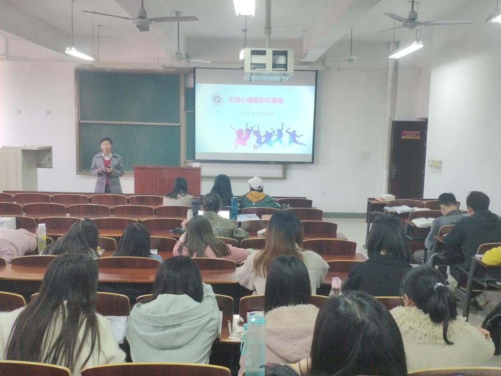 本次宣讲活动顺利开展,使同学们更好地理解心理救助在灾后恢复与重建中的重要作用,与此同时也鼓励了同学们应当积极响应灾后心理救助工作,以改同学们因缺乏勇气想帮而未能去帮的局面,意义十分重大。