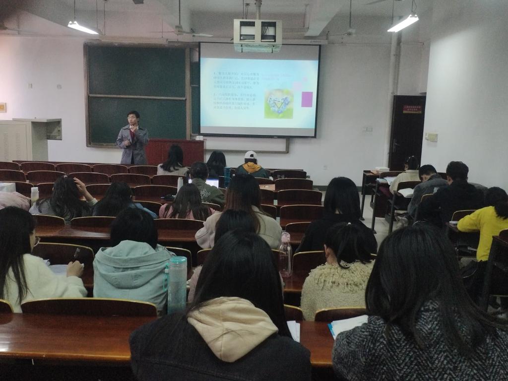 周裕件将本次宣讲分为“国内外心理援助发展现状的分析”、“心理援助的过程如何开展”以及“灾后伤者心理创伤如何自愈”三个板块进行。首先他从理论和实践两个层面向同学们介绍了国内外目前灾后心理援助的发展,并得出了国内在灾后恢复与重建方面仍普遍落后于国外的结论,紧接着他引用实例,指出了灾后恢复与重建的重中之重在于对伤者进行长期的心理治疗,再之后,他着重讲述了灾后心理援助过程如何进行开展,提出灾后心理援助是政府、心理帮扶志愿者与灾区群众紧密联系的一个过程,同时也是一项长期而细致的工作,不可能一蹴而就,灾区可通过团中央、中国红十字会等部门与心理救助志愿者建立长期的联系,有计划、有组织地接纳心理救助志愿者,建立心理干预的的定向帮扶制度,使心理恢复成为灾后整体恢复与重建的一项持之以恒的重要内容。最后,他将重点转移到“自愈”方面上来,在政府部门和社会公益组织的帮扶下,灾区群众要积极面对突如其来打击,树立起短期和长期对未来生活的信心,这样才能真正地使灾区群众心理救援工作起到事半功倍的效果。