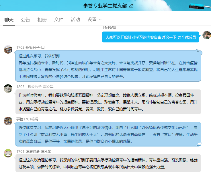 为深入学习贯彻习近平总书记五四寄语精神,发挥支部成员在公司广老员工群体中的思想引领作用,太阳成集团tyc33455cc员工党支部于2020年5月19日下午开展了“学习五四精神”理论学习活动,依托党支部QQ群、学习强国平台,组织全体党员、预备党员、发展对象和入党积极分子共同参与。
