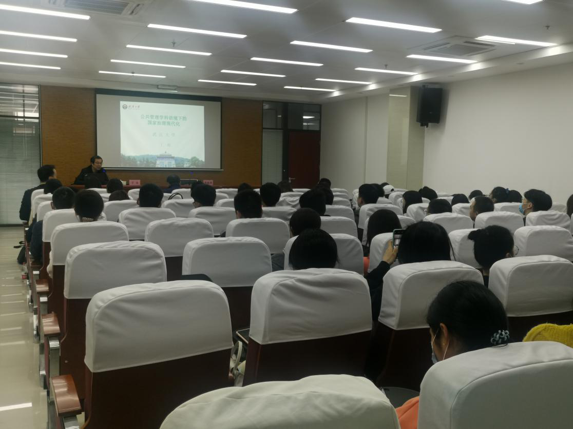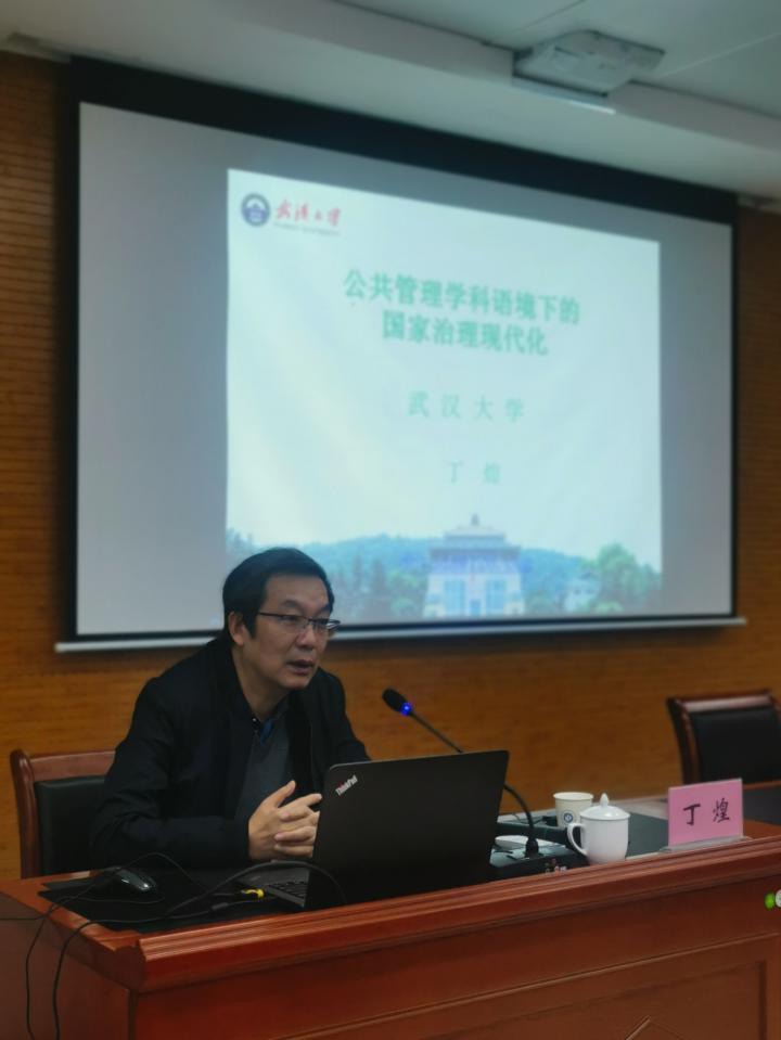 11月10日上午9:00,在后勤楼313会议室,国务院学位委员会公共管理学科评议组成员、武汉大学博士生导师、全国MPA教指委委员丁煌教授为应急管理全院师生讲授《公共管理语境下国家治理现代化》专题,师生们对丁煌教授的到来表示了热烈欢迎。
