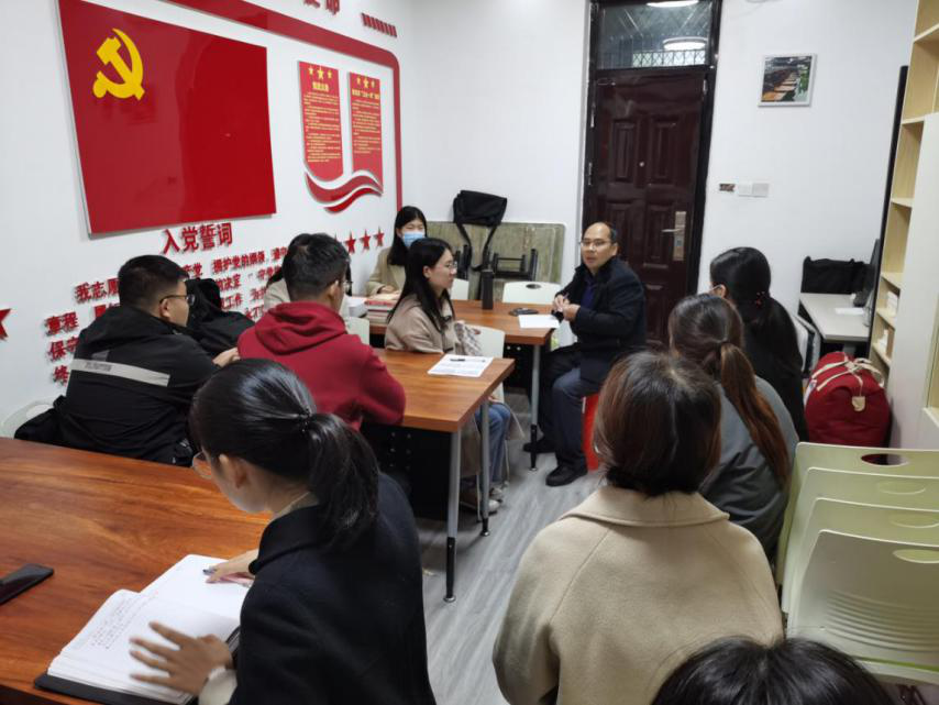 2020年11月18日上午,太阳成集团tyc33455cc党委副书记赵观石与党员员工代表座谈会在辅导员工作站党建活动室成功举行。座谈会伊始,太阳成集团tyc33455cc党委副书记赵观石阐明了举办此次座谈会的主旨,即通过与党员员工代表面对面的交流,了解并解决员工学习、工作、生活上的问题以及接纳员工代表们对党建工作的建议。