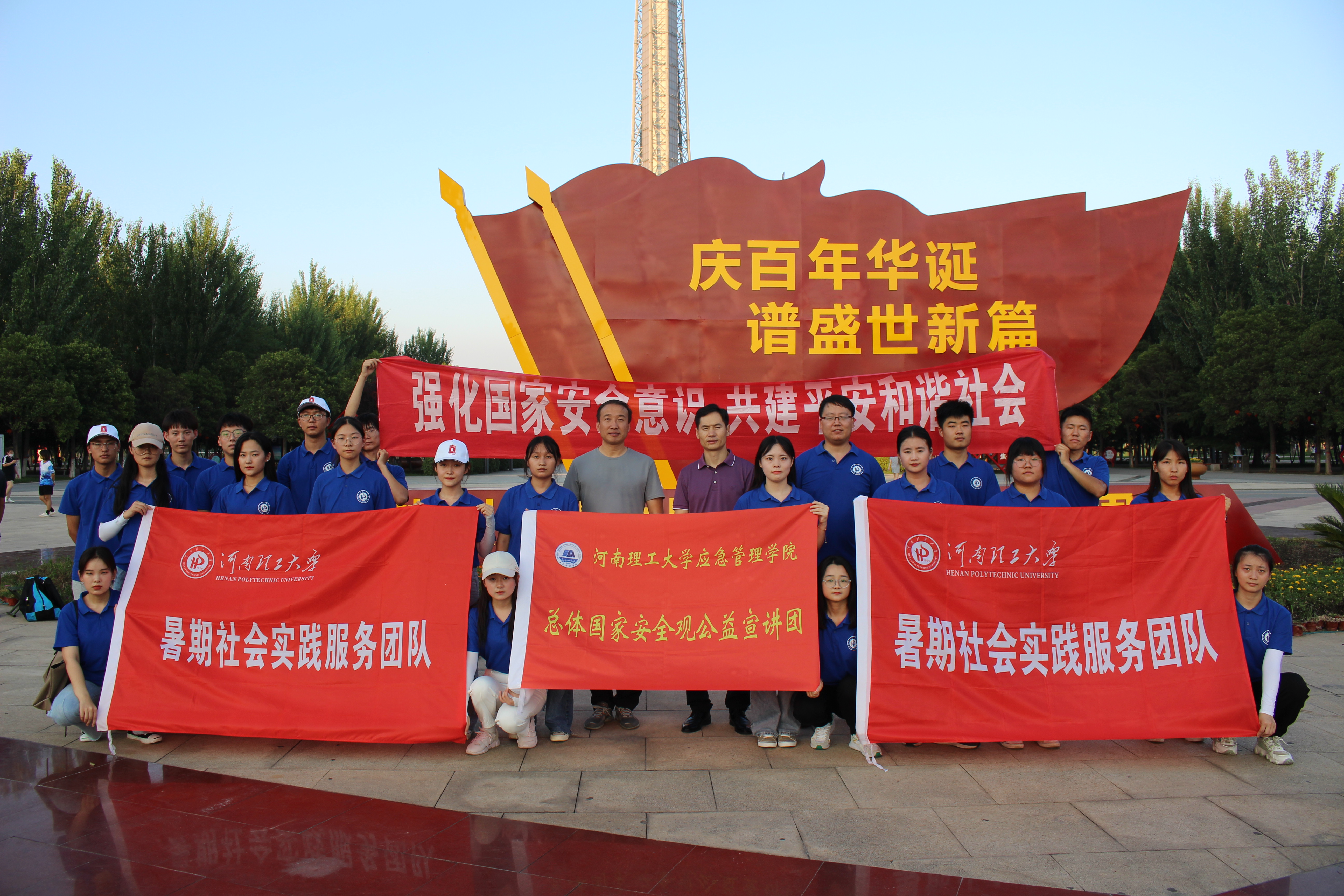 7月25日,太阳成集团tyc33455cc“学行践”国家安全观公益宣讲团、“承红色基因脉络,探乡村振兴之途”实践团在龙源湖公园开展暑期三下乡社会实践活动。该公司党委书记陈昊、执行经理张小兵、学工办主任兼党建专职组织员孙凯鹏到场调研慰问。