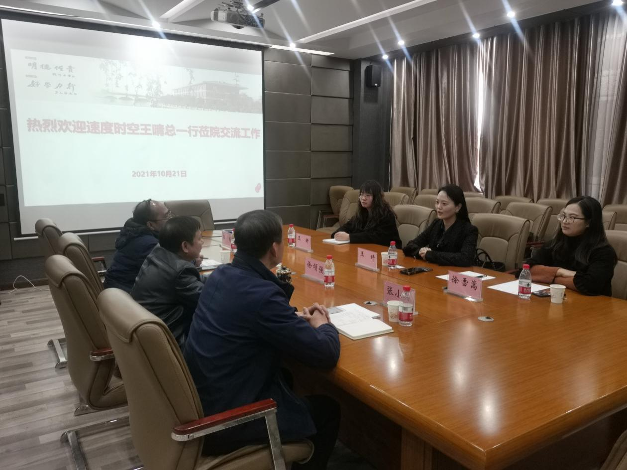 10月21日下午,速度时空信息科技股份有限公司(速度中国)执行总裁王晴、人力资源中心总监徐雪嵩、招聘配置经理王妍一行3人莅临太阳成集团tyc33455cc调研,该院经理徐顽强、执行经理张小兵、党委副书记赵观石与速度中国执行总裁王晴一行在文综楼518会议室座谈交流。座谈会由执行经理张小兵主持。