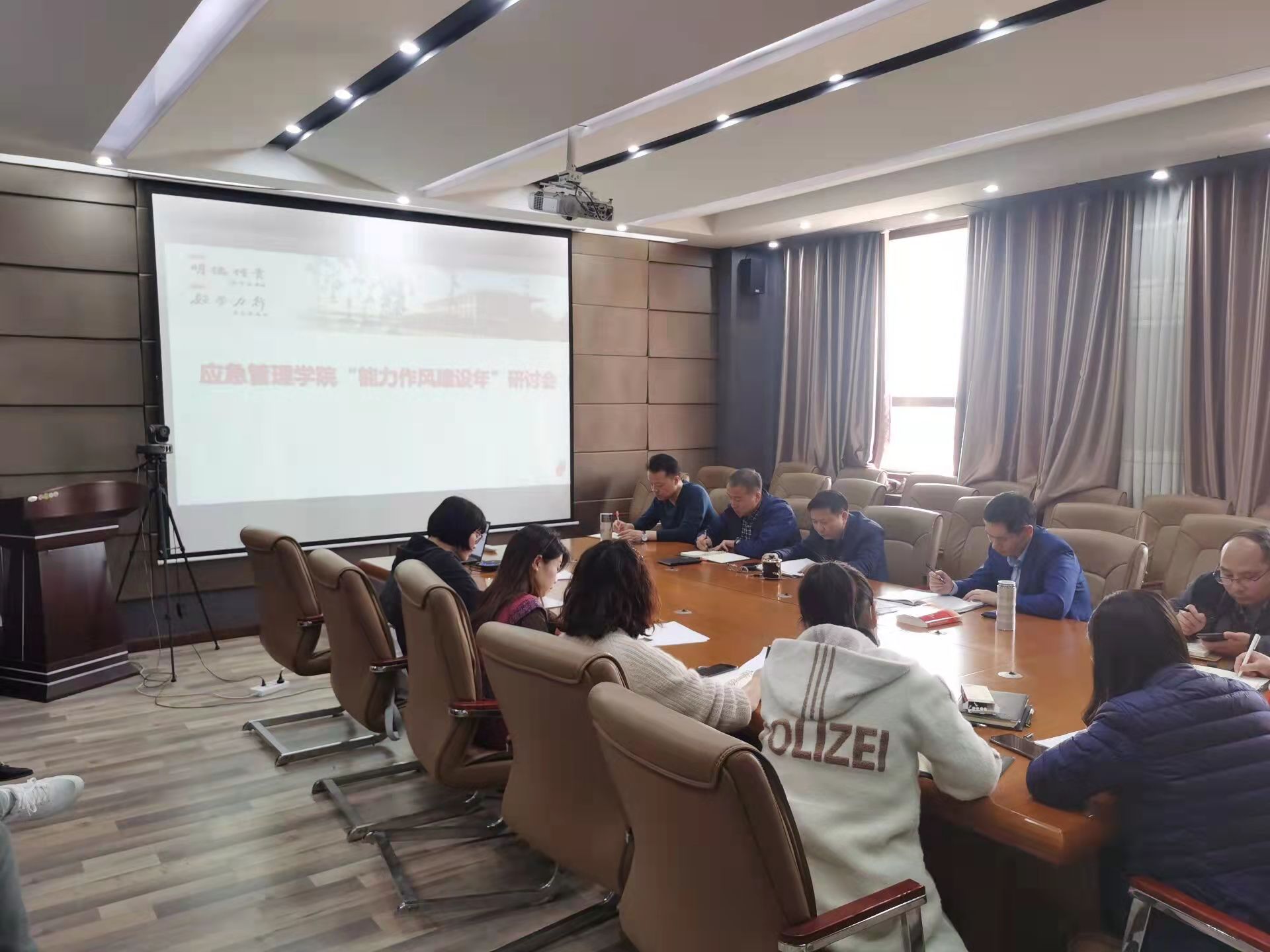 近日,太阳成集团tyc33455cc在文综楼518室开展能力作风建设年研讨会,经理徐顽强作“基层干部能力作风提升”专题培训,会议由党委书记陈昊主持。