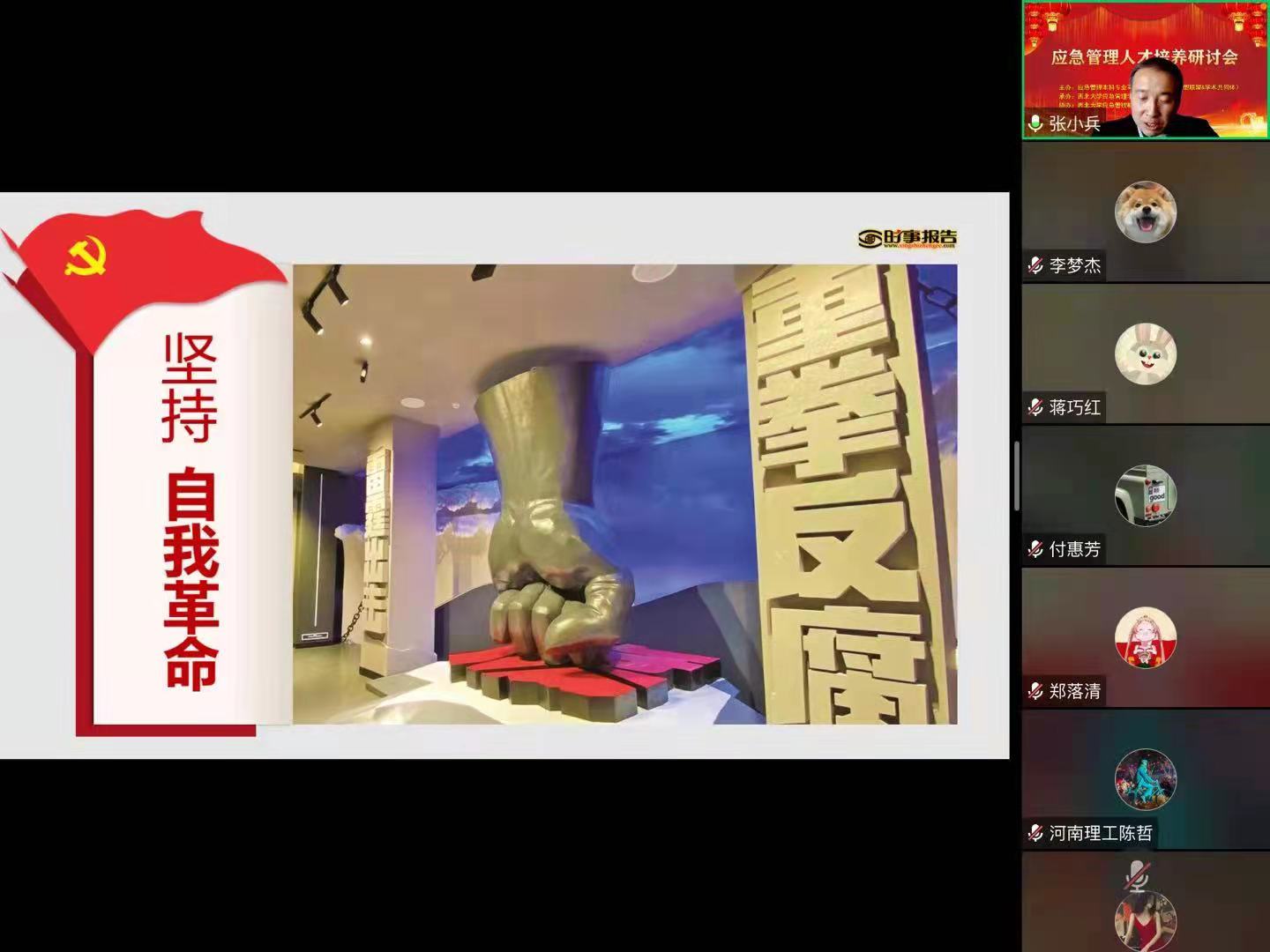 授课中,张小兵教授围绕党的复兴进程、新时代新篇章、党的伟大贡献以及未来行动指南等四个方面作细致讲解,重点阐述了“党的伟大成就”“两大结合”“两个确立”“党的伟大贡献”等核心精神。他强调,同学们要毫不动摇地坚定维护习近平总书记在党中央、全党的核心地位,在政治上、思想上、行动上同党中央保持高度一致。他指出,同学们要把党的百年奋斗精神融入艰辛的科研创新中,把宝贵的精神财富贯穿研究生学习生活的方方面面,努力锻造严谨求是、坚韧自律和果敢勇毅的意志品质,在平凡中弘扬伟大建党精神。他号召全体师生携起手来,从党的百年历史中汲取前进的智慧和力量,在公共管理学科切实践行为党育人、为国育才光荣使命,着力推动学科新发展和人才培养高质量。