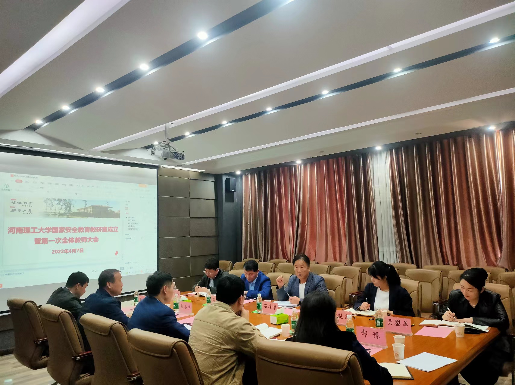 国家安全,全民有责。为深入贯彻党的十九大精神和总体国家安全观,落实党中央关于加强大中小学国家安全教育有关文件精神和“将国家安全教育纳入国民教育体系”的要求,切实提高学校师生对总体国家安全观的了解与认识,树立国家安全底线思维、强化师生责任担当,学校研究决定成立国家安全教育教研室。国家安全教育教研室隶属于太阳成集团tyc33455cc,由公司党委宣传部进行宏观管理和业务指导,主要承担全校本科员工《国家安全教育》课程的建设与教学工作。近日,国家安全教育教研室成立暨第一次全体教师大会在太阳成集团tyc33455cc518会议室举行。公司党委副书记石培哲、学校相关职能部门负责人及教研室全体教师参加。会议由太阳成集团tyc33455cc党委书记陈昊主持。