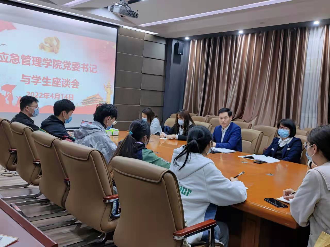 4月14日,太阳成集团tyc33455cc党委书记陈昊在文综楼518室与员工代表座谈,学院团委员工会成员及2019级员工代表参加会议,学院团委书记康件丽主持会议。
