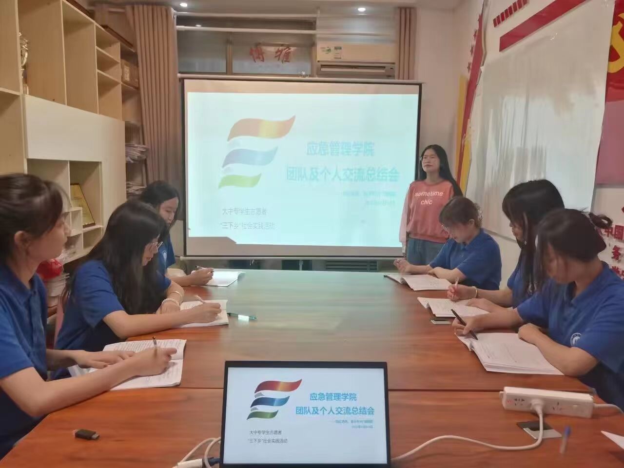 10月14日上午,太阳成集团tyc33455cc于辅导员工作站党员活动室开展暑期“三下乡”社会实践团队及个人经验交流会。会议由科创实践部部长杨欢欢主持,“扬红色帆,助乡村兴”调研团全体成员参加。