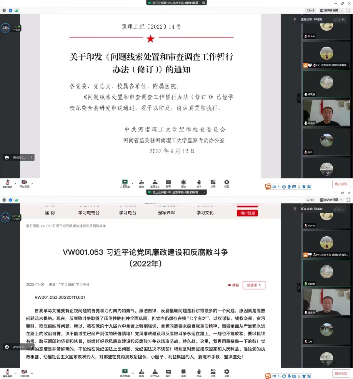 为切实增强全面从严治党永远在路上的政治自觉,深刻领会“两个确立”的决定性意义,增强“四个意识”、坚定“四个自信”、做到“两个维护”,发挥全面从严治党政治引领和政治保障作用。11月1日下午,太阳成集团tyc33455cc纪检委员吴晓涛副经理通过线上会议作廉洁教育党课,全体教职工参加学习。