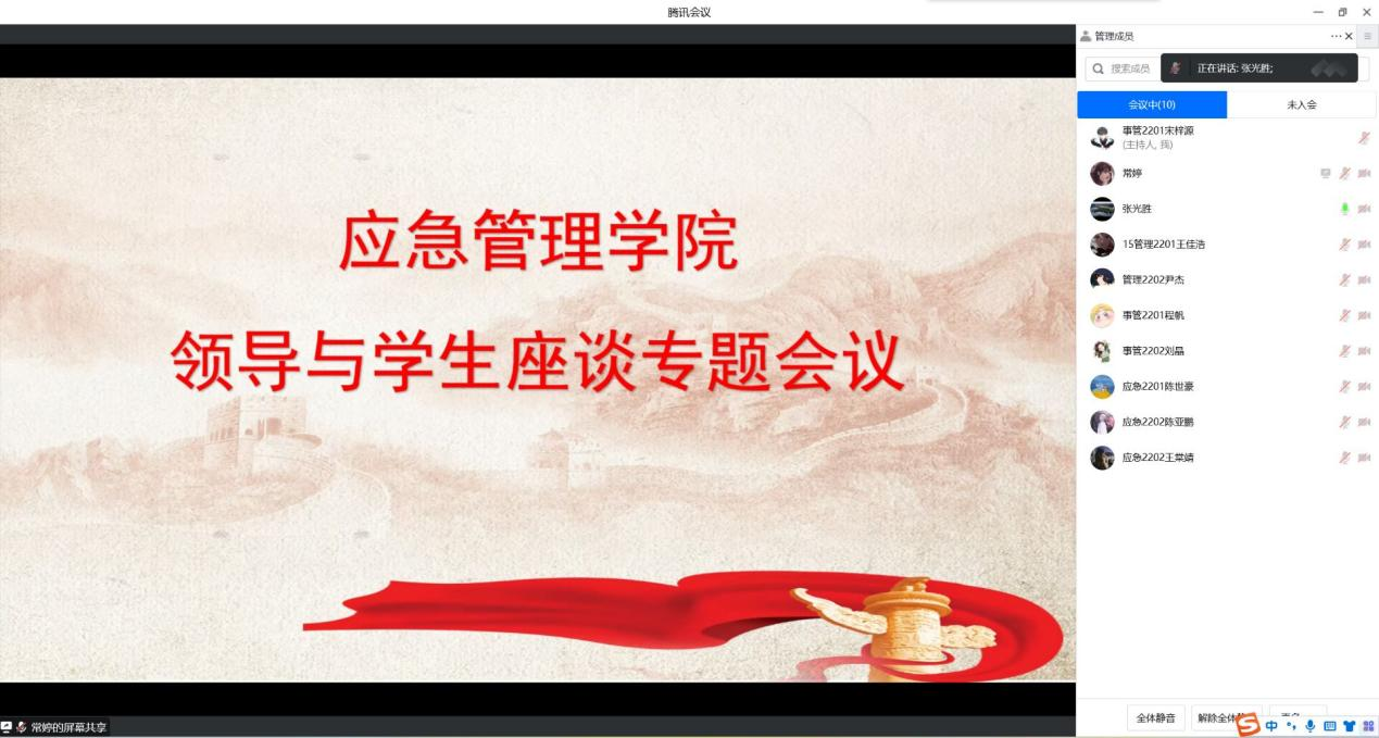 会议伊始,八位新生代表依次从思想、学习和生活三个方面分享了入学半年的心得体会和存在问题。张光胜书记首先对大家的学业生涯规划提出了殷切的期望;紧接着,他就学校当前的疫情防控政策作出了解释和说明,此措施切实保护了广大师生的生命健康和正常的学习生活;最后,张光胜作总结讲话,他充分肯定了同学们优良的纪律作风,鼓励同学们珍惜青春时光,做“德智体美劳”全面发展的新时代青年。