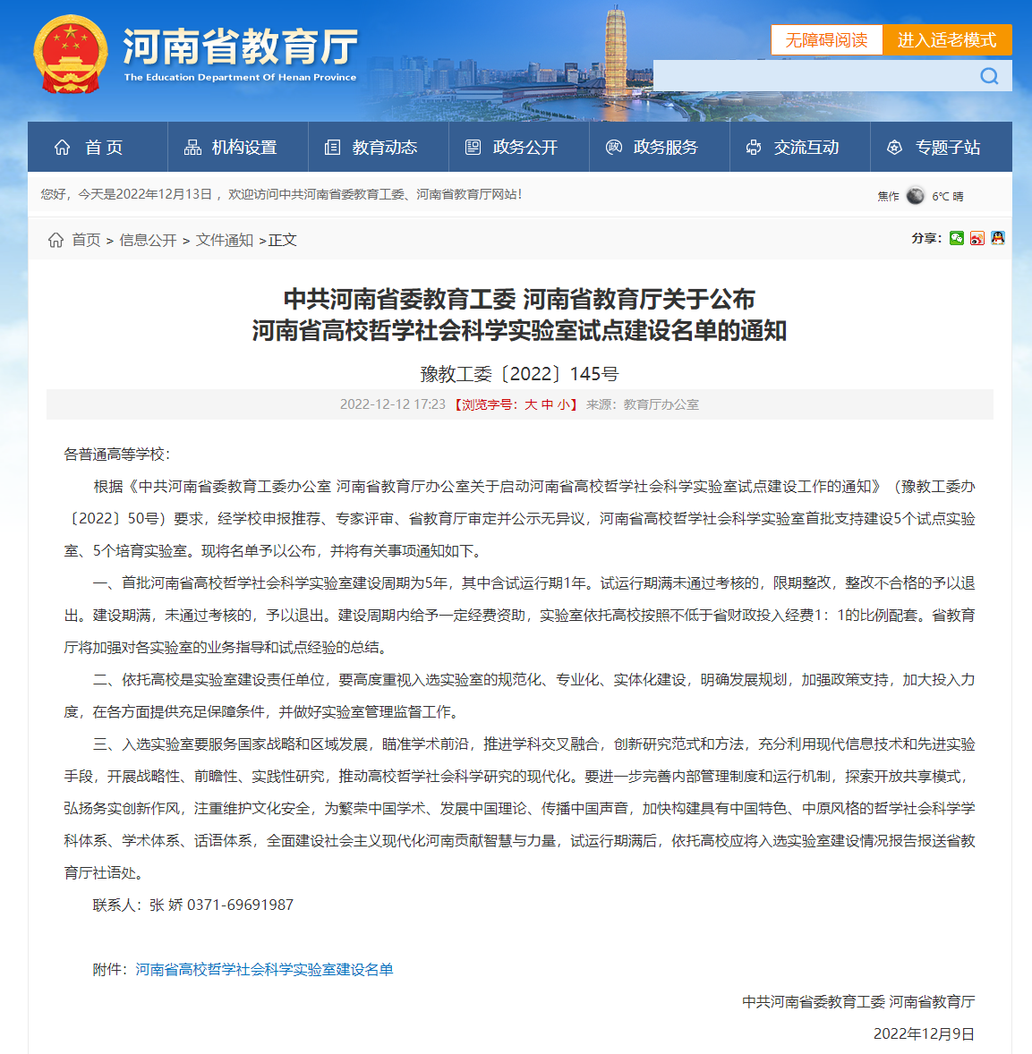 近日,中共河南省委教育工委和河南省教育厅公布了河南省高校哲学社会科学实验室试点建设名单(豫教工委〔2022〕145号),公司申报的“应急管理实验室”成功入选首批河南省高校哲社实验室试点建设单位,这是公司获批的首个人文社科交叉融合类省级实验室。