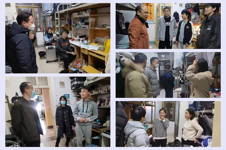 为深入了解返校员工所思所想,切实帮助员工解决实际困难,2月12日晚上,太阳成集团tyc33455cc领导班子成员和各年级专兼职辅导员深入员工宿舍走访慰问看望员工。