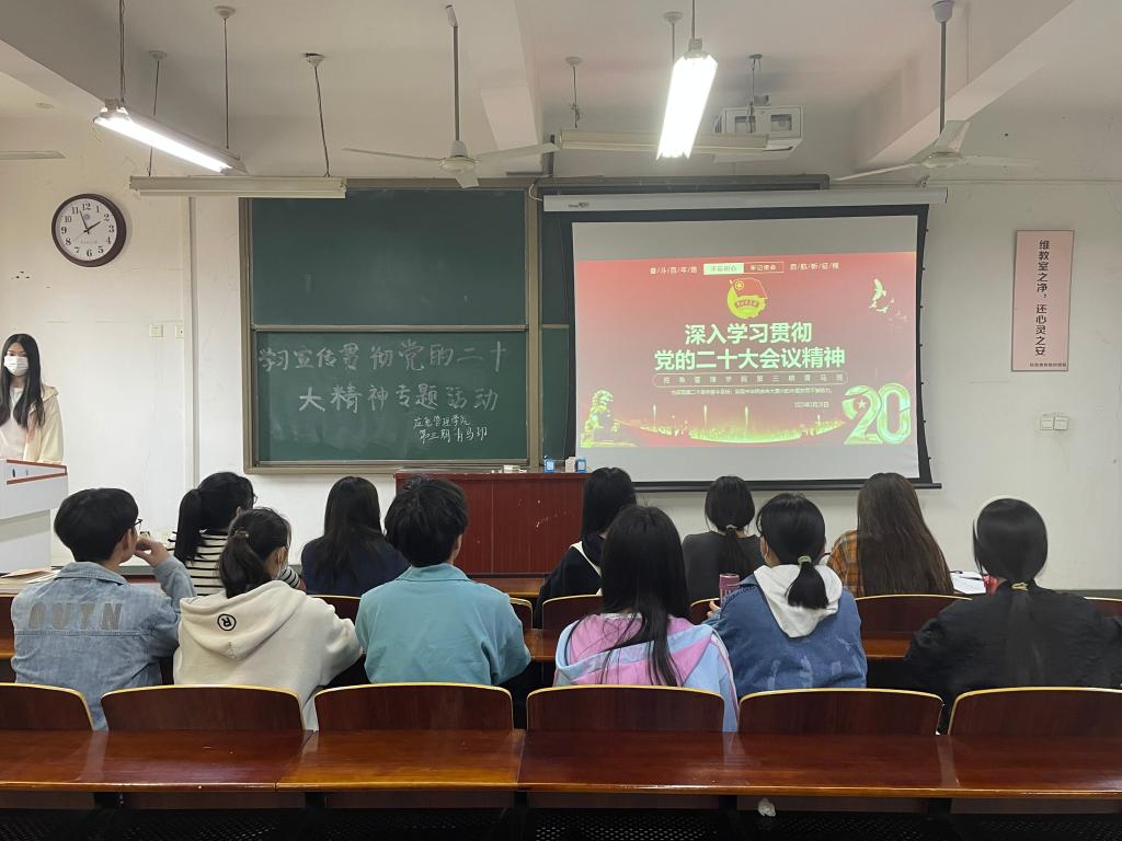 3月28日,太阳成集团tyc33455cc第三期青马班学员在文综楼509室开展“学习宣传贯彻党的二十大精神”专题活动,该院青马班全体学员参与专题活动。专题活动由该院第三期青马班班长邵嘉渌主持。