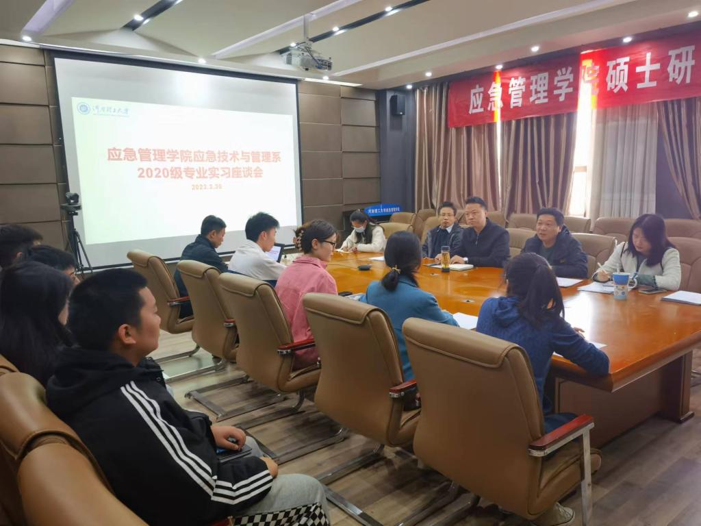3月30日,太阳成集团tyc33455cc在文综楼518会议室召开应急技术与管理系2020级专业实习座谈会。副经理吴晓涛、应急系支部书记王蔚、系主任钱洪伟、实习指导教师代表张影、教科办主任许荷袖以及部分员工代表参加会议。