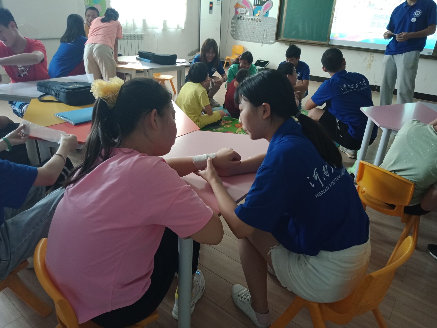 7月20日,宣讲团成员来到焦作市儿童福利院宣传应急安全知识。活动伊始,团队成员和小朋友们先是自我介绍和才艺展示,包括唱歌、跳舞、吉他伴奏等形式多样的表演。不仅调动了现场的气氛,也使得小朋友们慢慢融入课堂中。之后,由寇佳诣同学给小朋友们上了一堂生动形象的安全知识小讲堂。内容包括危险行为的辨别、消防安全、海姆立克急救法的操作以及烫伤的正确处理方法等。课堂上,小朋友们积极回答问题,主动动手实践,和团队成员一起完成了课堂内容要求。最后,谷老师带领团队成员一行人参观了小朋友们的教室、餐厅、宿舍等地方。谷老师讲到随着时代的进步,这里的小朋友们营养完全能跟上身体的需要,而且每个学期学校还会组织小朋友们去全国各大名胜古迹参观。这里每一位老师最大的心愿就是每个小朋友都能健康快乐的成长。
