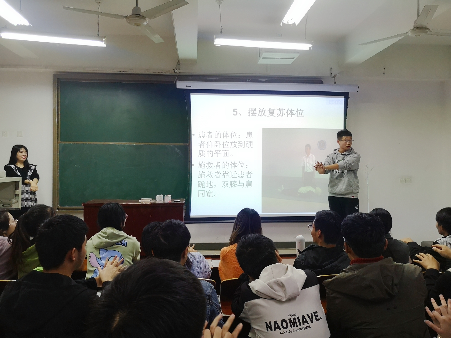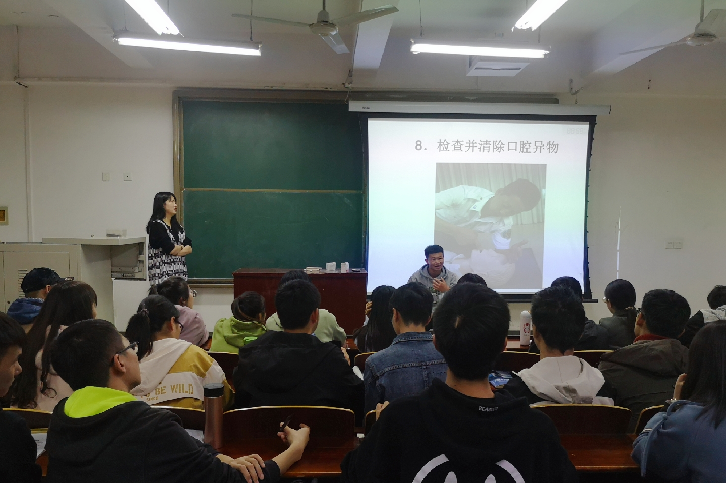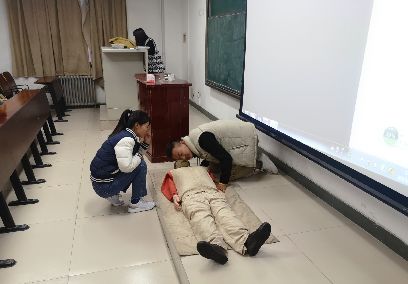 为了进一步培养员工应急意识,加强应急宣传教育,提高员工参与自救互救能力,学院开展了“学.行.践”国家安全观第30期一CPR走进课堂。 2019年11月15日,太阳成集团tyc33455ccwww应急救援队副队长田帅凡和李雯娇琦一同到文综楼510教室为材料学院部分大四同学讲解了心肺复苏相关知识。