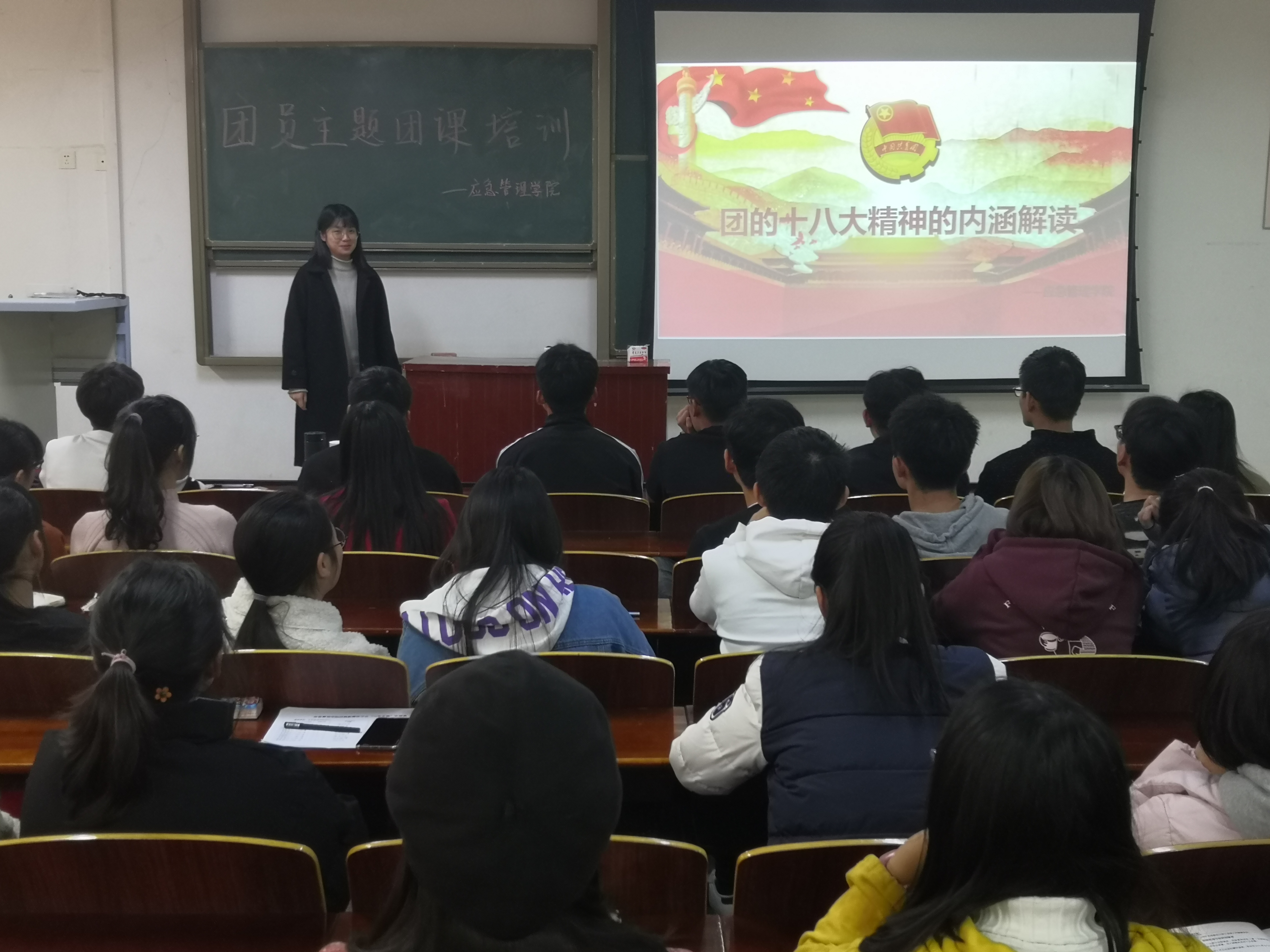 为深化团员们对团的十八大精神的理解,着力引导当代新青年,培养担当民族复兴大任的时代新人。11月26日,公司在文综楼509开展了主题为“团的十八大精神的内涵解读”的团课培训会,潘飞主讲,18、19级团干参加了培训。