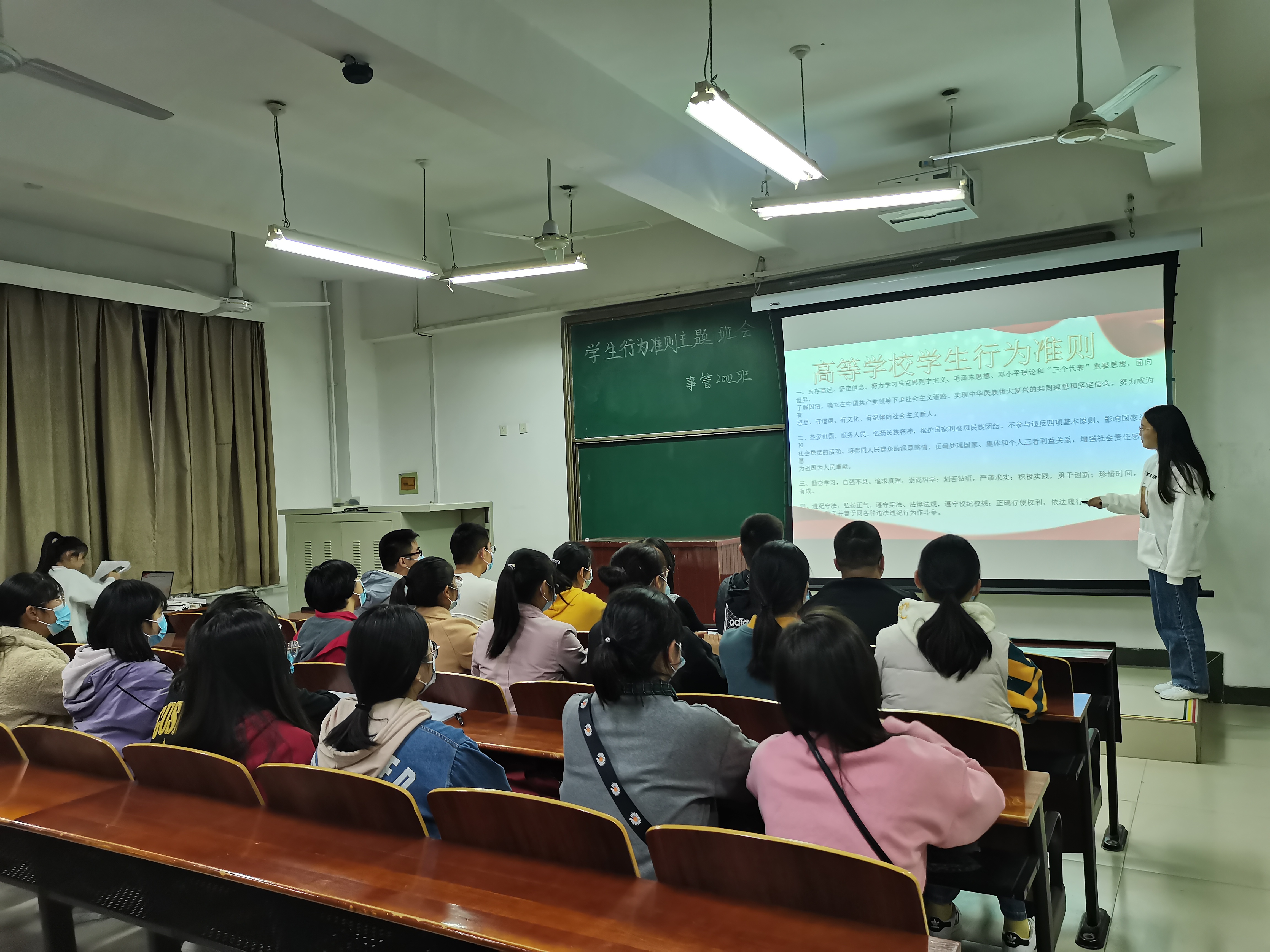 为了加强了同学们的思想政治工作,引导同学们树立坚定的理想信念,公司积极响应学校号召,以班级为单位召开了“高等学校员工行为准则学习”主题班会,18、19、20级全体员工参与。
