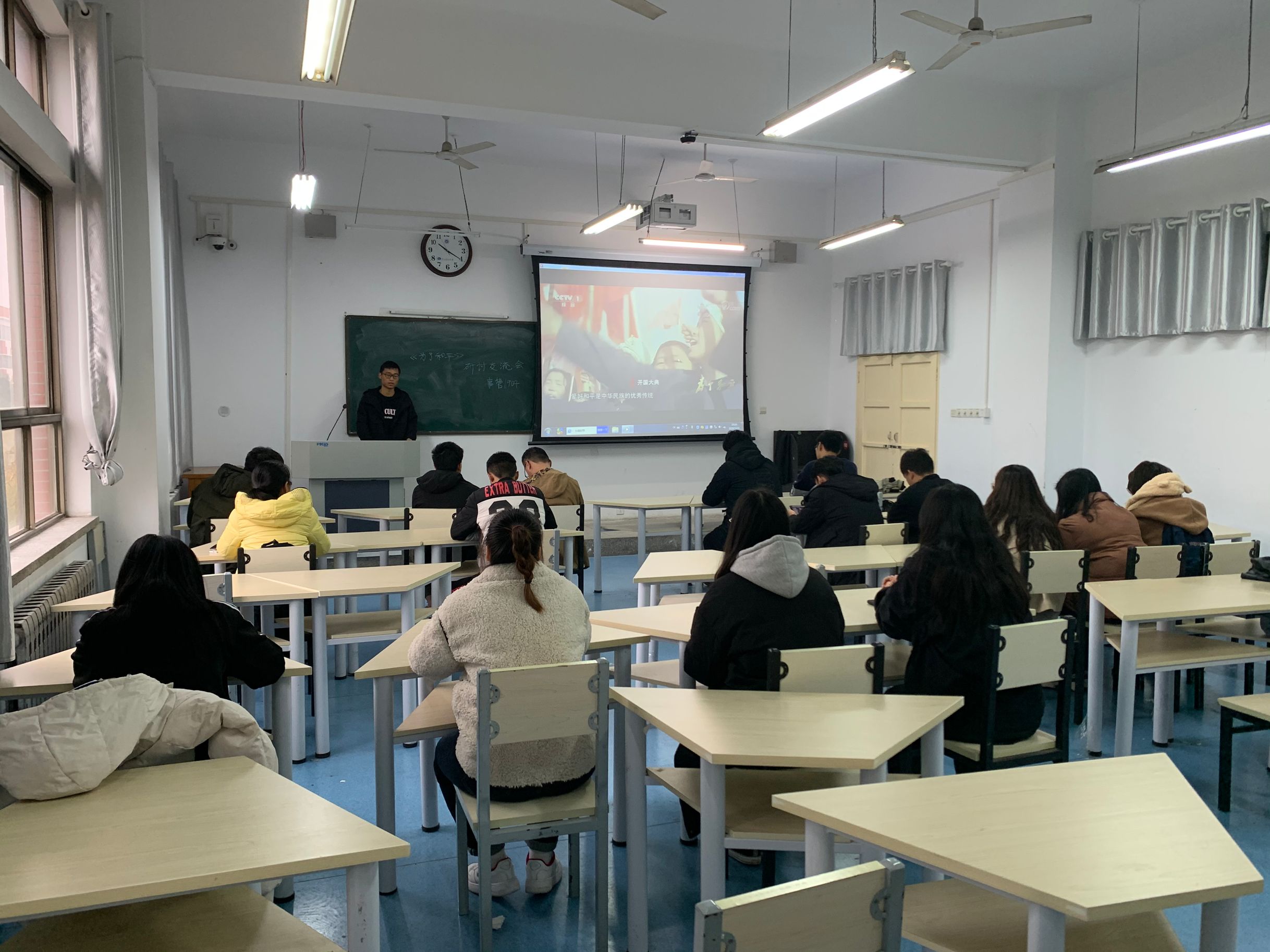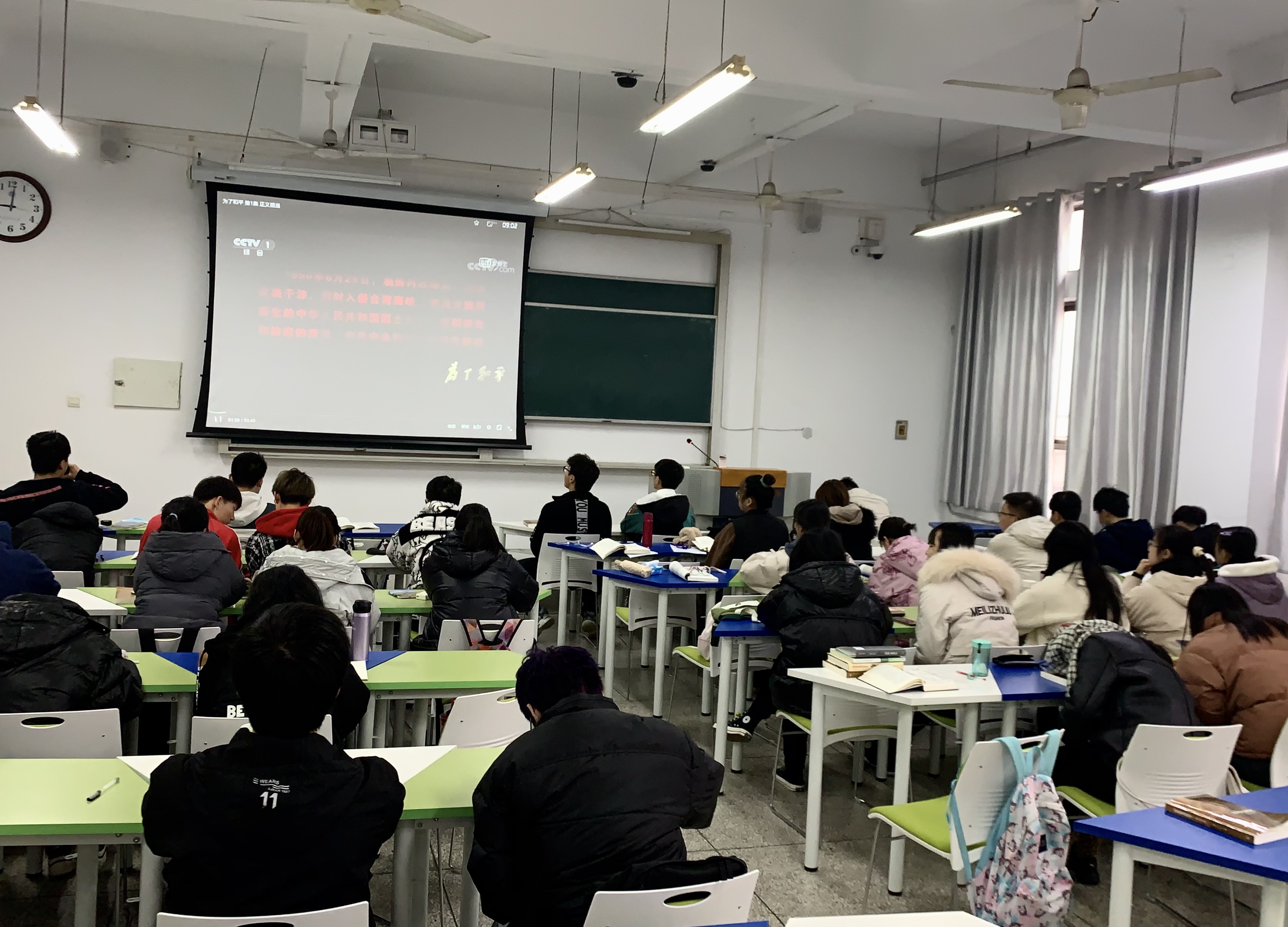 爱好和平是中华民族的优秀传统,新生的中华人民共和国更是深深懂得和平之宝贵,但为了“抗美援朝,保家卫国”,中国人民志愿军毅然入朝作战,历经了两年九个月的浴血奋战,终于取得了抗美援朝战争的伟大胜利,为世界和平和人类进步精神做了伟大贡献。取得这份胜利的代价是万千忠骨长眠在异国的土地上,是无数父母失去了孩子,是祖国失去了她的英雄儿女。观看期间,同学们多次落泪,被革命先烈英雄无畏的精神所震撼,感受到了今天的幸福生活来之不易,是无数先人“抛头颅,洒热血”所换来的,值得每个人的珍惜。观看结束后,同学们纷纷利用社交软件积极讨论、分享感触,气氛十分活跃。