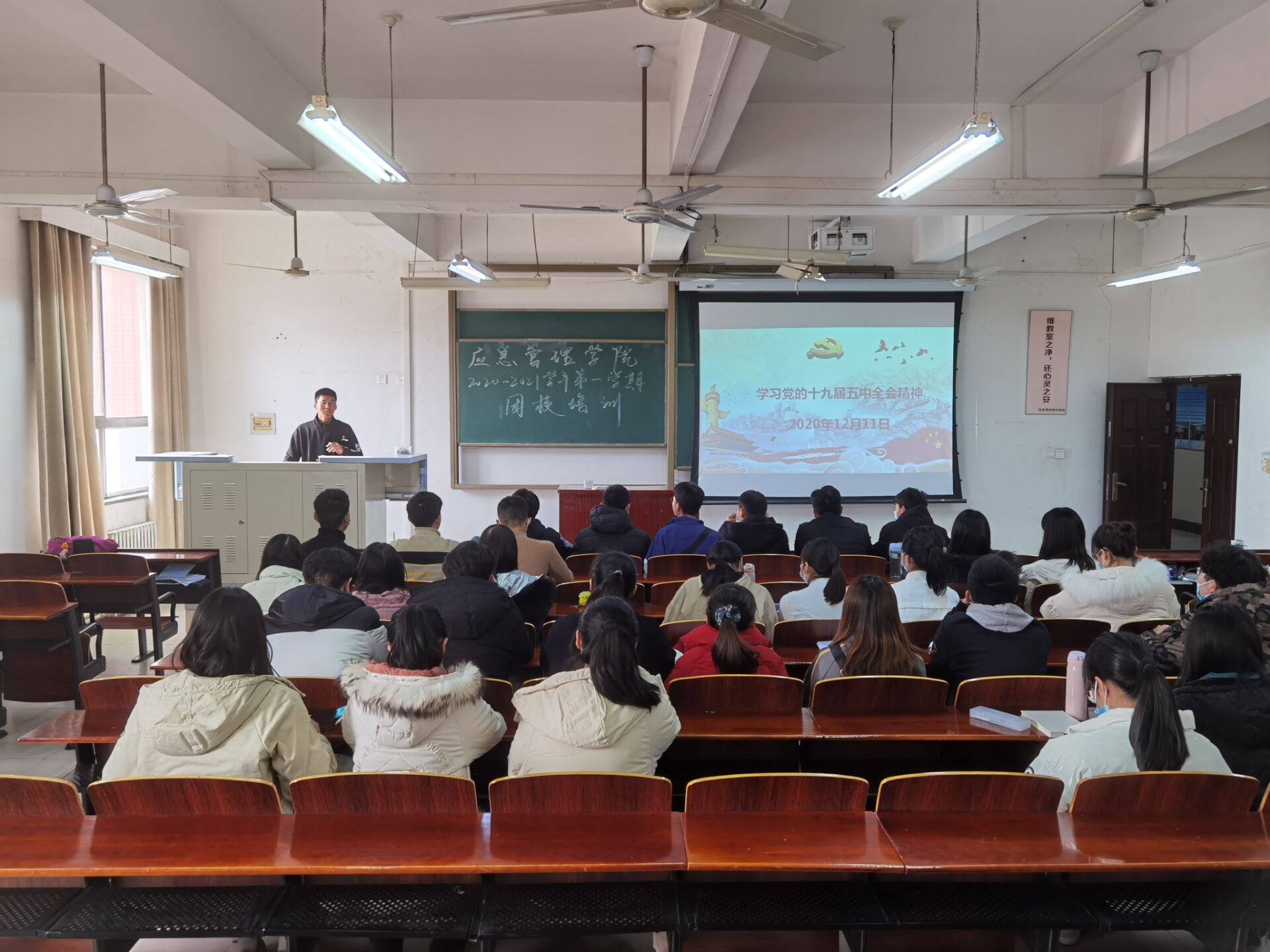 12月11日,公司于文综楼509教室开展“十九届五中全会精神学习”主题团干团校培训,公司优秀团学干部代表侯林帅与学院全体新任团学干部共同学习十九届五中全会的内容。