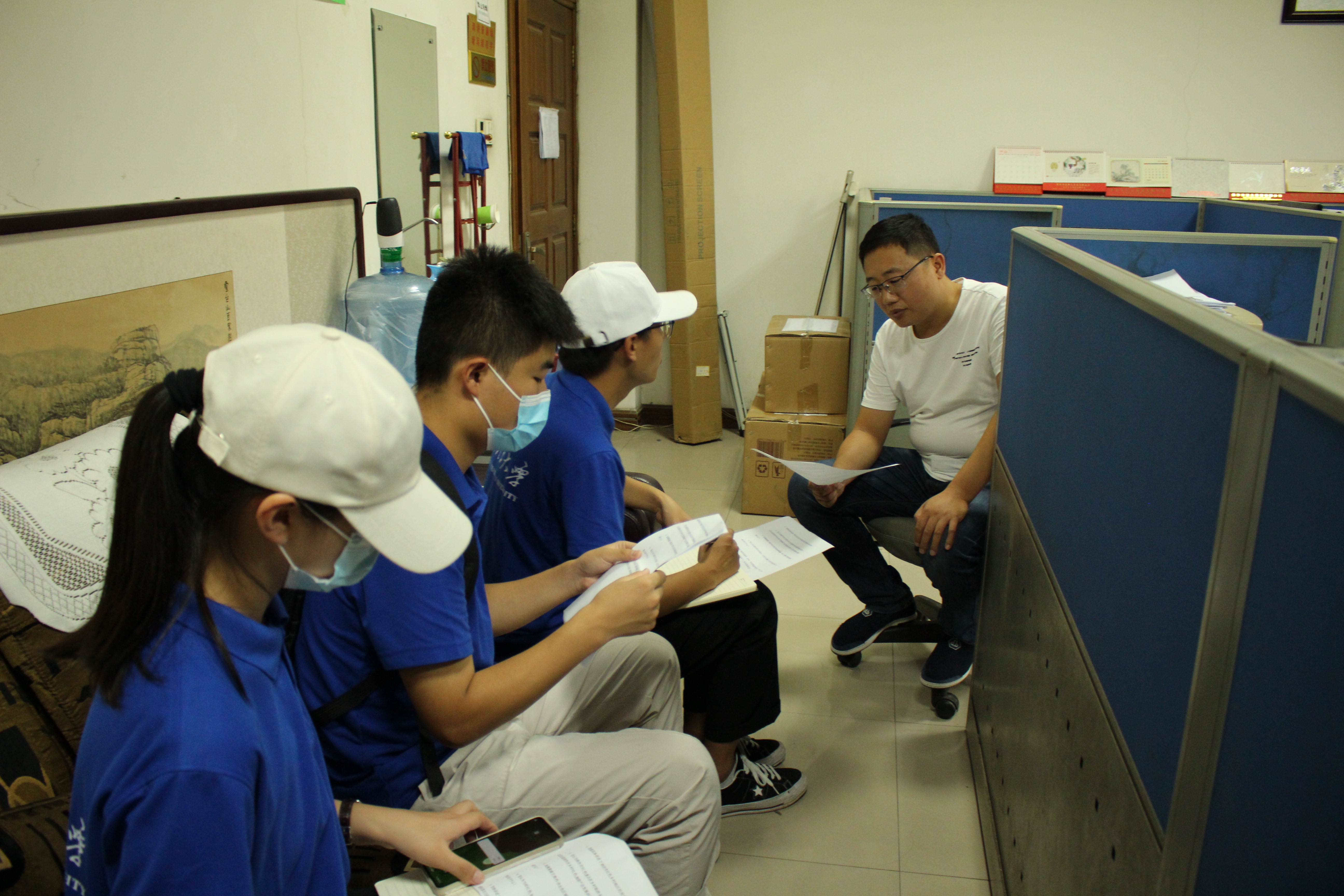 实践团成员首先前往焦作市文化广电和旅游局,就焦作市目前的红色乡村的发展规划与红色旅游产业的规模等问题与工作人员冯光中进行了交流。“焦作市目前正大力发展红色乡村与全域旅游结合的乡村振兴路径,但发展过程中存在红色文化发掘不足、缺乏独特的文化品牌等问题。”冯光中在谈及红色文化发展现状时如是说道。