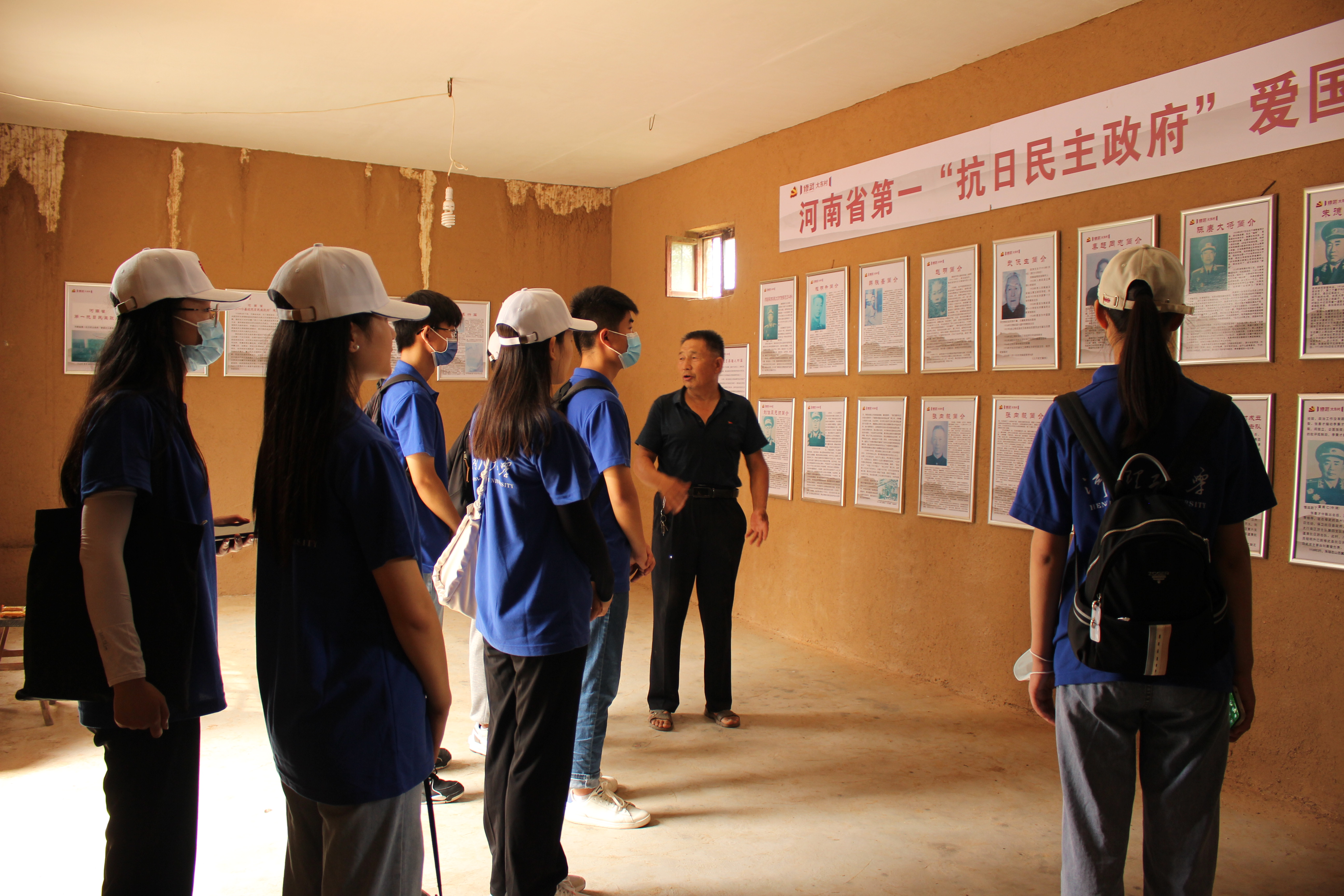 调研过程中,实践团主要通过发放调查问卷、参观河南省第一抗日民主政府“爱国主义教育基地”、与村干部访谈等方式对大东村历史沿革、红色革命文化、红色文化遗址保护等情况进行了专题调研。在河南省第一抗日民主政府“爱国主义教育基地”,实践团跟随讲解员刘全恭回顾了大东村这片土地上波澜壮阔的革命历史,感受了修武县人民压倒一切敌人、压倒一切困难的革命精神。