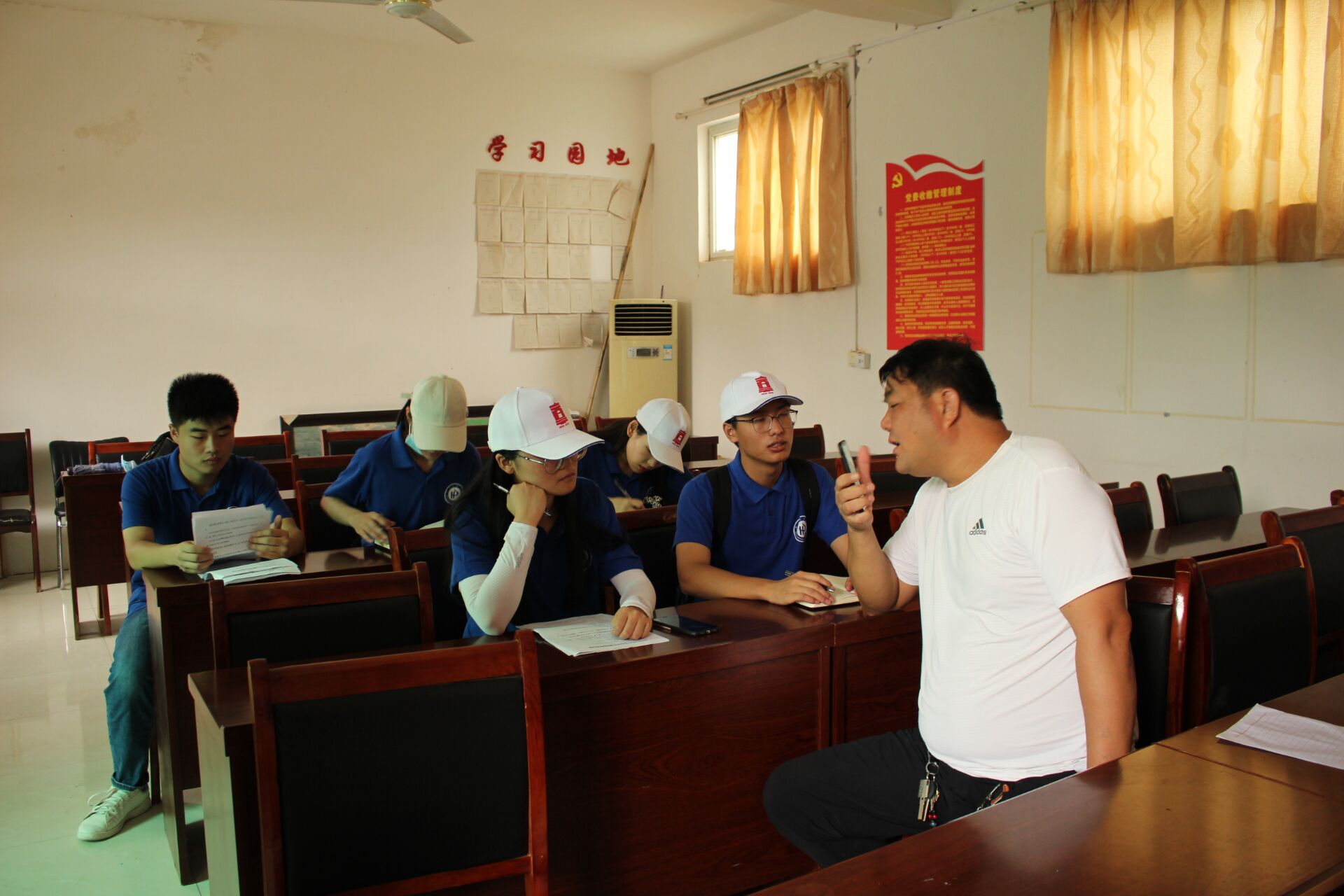 实践团来到当地村委会。“作为河南省第一个中国中国共产党领导的县级抗日民主政府驻地,我们村子在历史上就有浓墨重彩的一笔,村子红色底蕴浓厚,民风淳朴,在政府支持下,村子还会不时举办一些红色文化活动,浓厚村庄的红色氛围。”当地村支部书记刘贵利如是说。在与刘贵利的访谈交流中,实践团成员对大东村的红色历史沿革与发展规划有了更直观、全面、深层的理解。