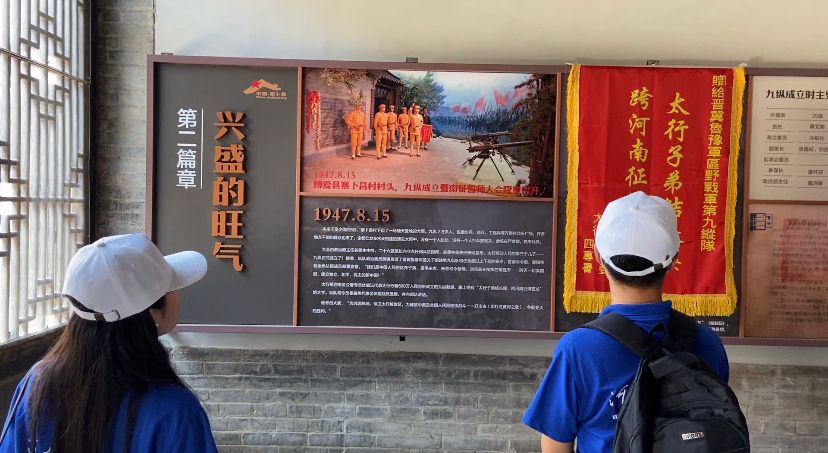 王刚向实践团详细介绍了寨卜昌村的红色文化氛围、规划情况以及古建筑的历史沿革。北倚巍巍太行,南濒滔滔沁水。在寨卜昌这片古老而又神奇的土地上,诞生走出过一支光荣而伟大的人民军队——晋冀鲁豫野战军第九纵队。他征战豫西,决战淮海,挥师两广,为中国人民的解放事业作出了重大贡献。“村子的红色文化氛围是很好的,近年来国家也一直支持红色文化发展,重视文物保护,村里一些古建筑在2013年已经成为全国重点文物保护单位,我们把古建筑和红色教育相结合的形式取得了显著的成效。”王刚向实践团如是说道。实践团一行认真倾听,追忆革命先辈艰苦卓绝的奋斗历程,感受寨卜昌村发展的巨大变化,一起追寻共产党人的初心和使命。
