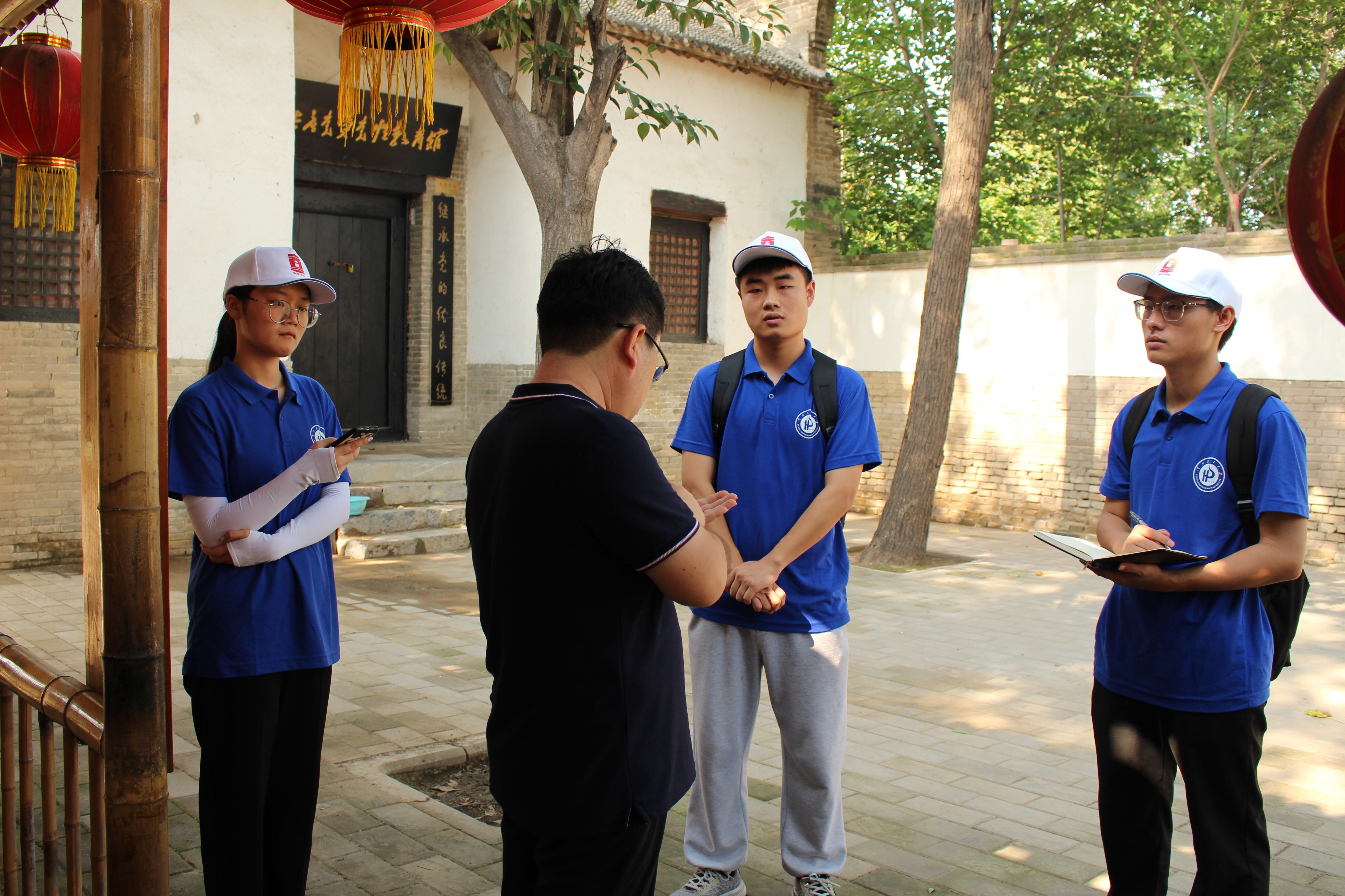 王刚向实践团详细介绍了寨卜昌村的红色文化氛围、规划情况以及古建筑的历史沿革。北倚巍巍太行,南濒滔滔沁水。在寨卜昌这片古老而又神奇的土地上,诞生走出过一支光荣而伟大的人民军队——晋冀鲁豫野战军第九纵队。第九纵队征战豫西,决战淮海,挥师两广,为中国人民的解放事业作出了重大贡献。“村子的红色文化氛围是很好的,近年来国家也一直支持红色文化发展,重视文物保护,村里一些古建筑在2013年已经成为全国重点文物保护单位,我们把古建筑和红色教育相结合的形式取得了显著的成效。”王刚如是说道。实践团一行认真倾听,追忆革命先辈艰苦卓绝的奋斗历程,感受寨卜昌村发展的巨大变化,一起追寻共产党人的初心和使命。