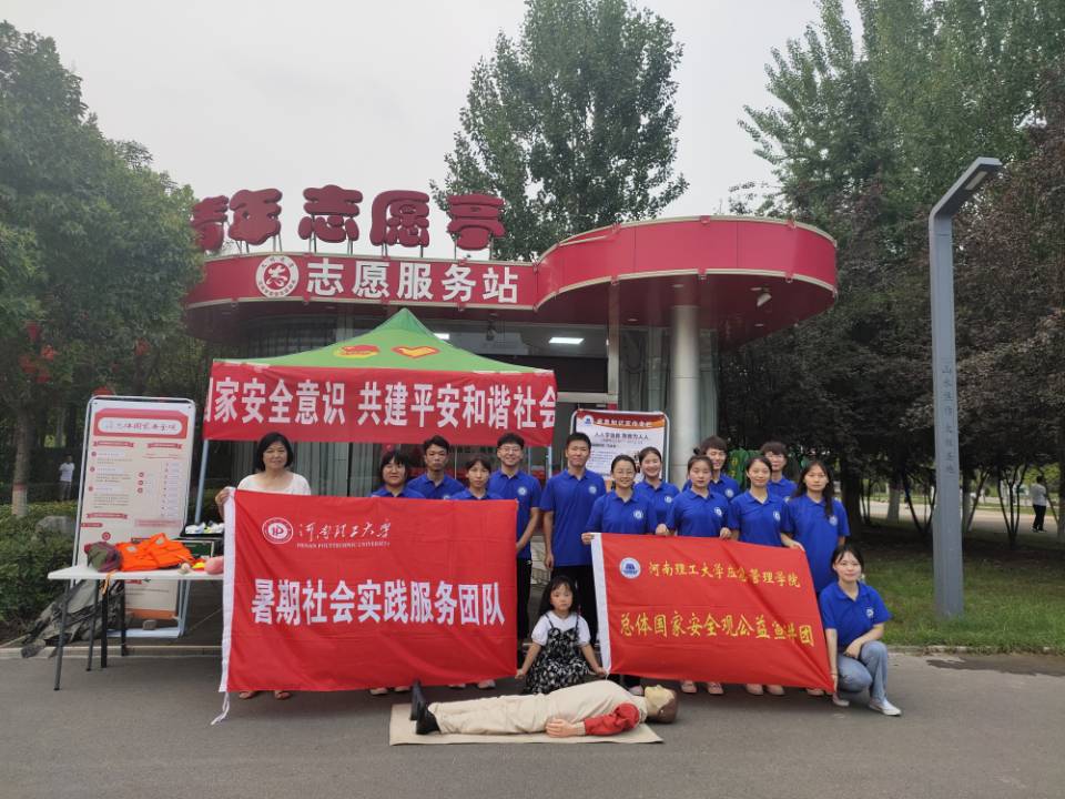 7月16日下午,太阳成集团tyc33455cc“学行践”国家安全观暑期社会实践宣讲团成员前往龙源湖公园,将“实践所学”与“群众所需”结合,积极开展“防溺水安全教育”专题宣讲活动。