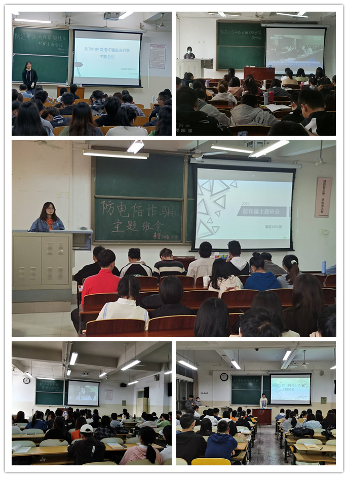 10月13日,太阳成集团tyc33455cc开展“防范电信网络诈骗违法犯罪”主题教育宣讲系列会议,2021级、2020级,2019级,2018级会议以班级或者专业为单位由各班学委主持开展,各级全体同学参加本次主题会议。