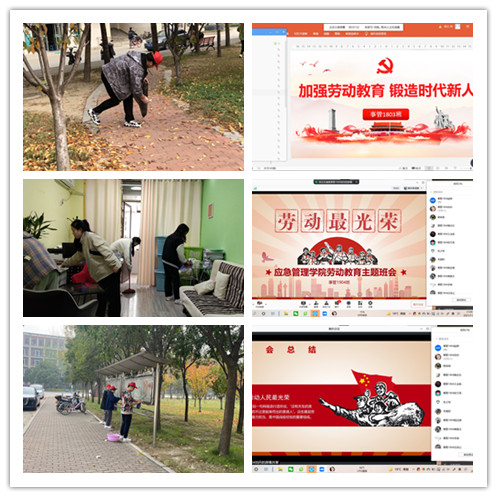 据悉,本次活动分为线上和线下两种形式。18、19级各班积极响应号召,以线上会议讲解 PPT 的方式开展关于劳动的主题班会。其中事管1903班召开“青春有我,劳动光荣”的主题班会,通过介绍21世纪培养自立创新型人才的必备素质指出不仅要重视劳动教育,更要重视劳动习惯的培养。事管1904班“劳动最光荣”主题班会结合疫情防控中奉献的医护人员的案例,深入讲解劳动的重要性,突出强调了基层劳动者的奋斗担当,并鼓励同学多多劳动、勇于拼搏。线下活动中,20级和21级的同学积极参与辅导员办公室和学校草地的清扫。各小组带着清洁工具在分划区域,清扫校园内的枯枝落叶、杂草杂物,装运垃圾等。他们干劲十足,现场气氛活跃,充分发挥了青年人不怕苦、不怕累、任劳任怨的精神。