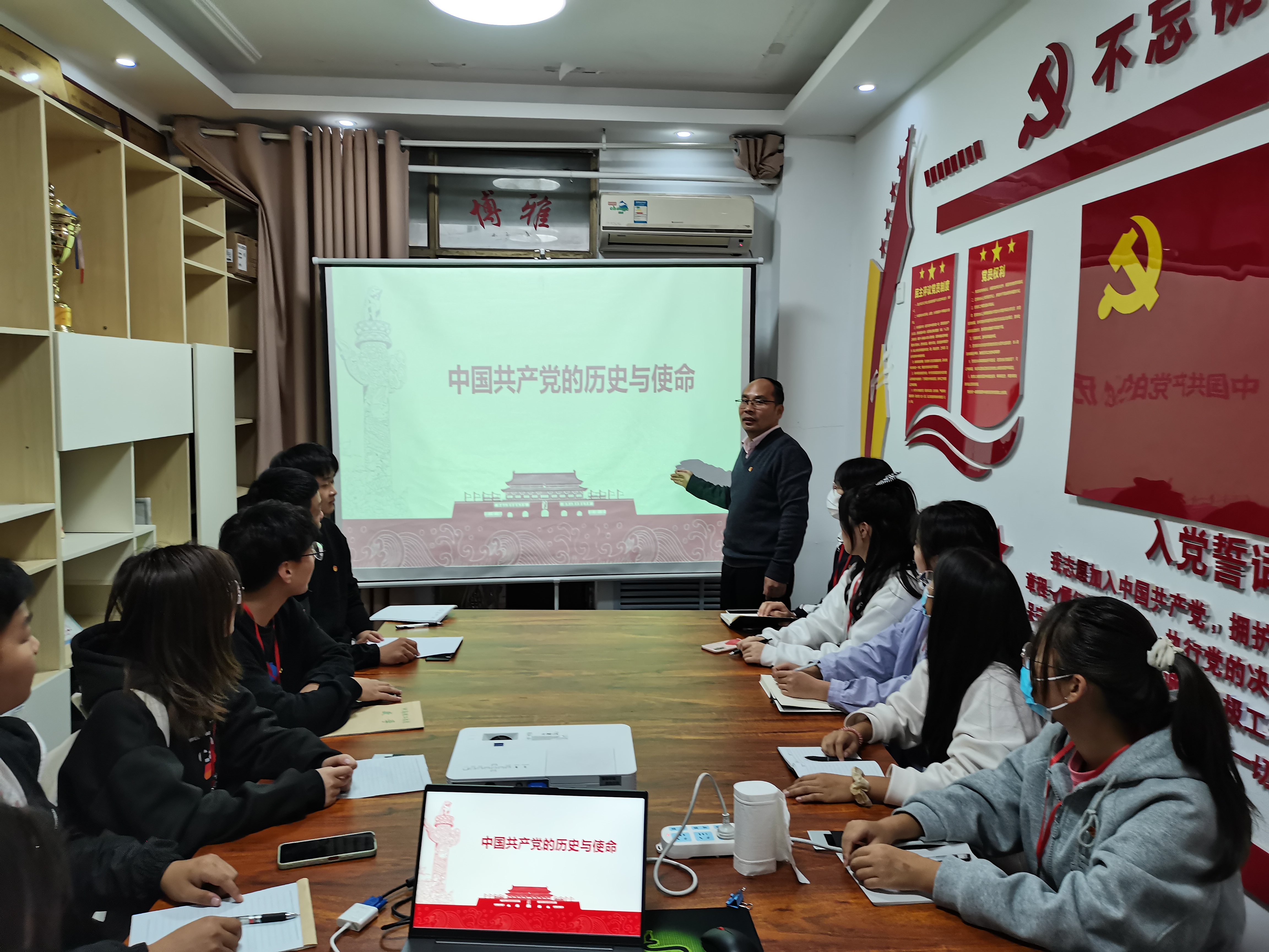 10月12日下午,太阳成集团tyc33455cc青马班在辅导员工作站党员活动室开展“中国共产党的历史与使命”主题教育团课。团课由公司党委副书记赵观石主讲,全体青马班学院聆听了此次团课。