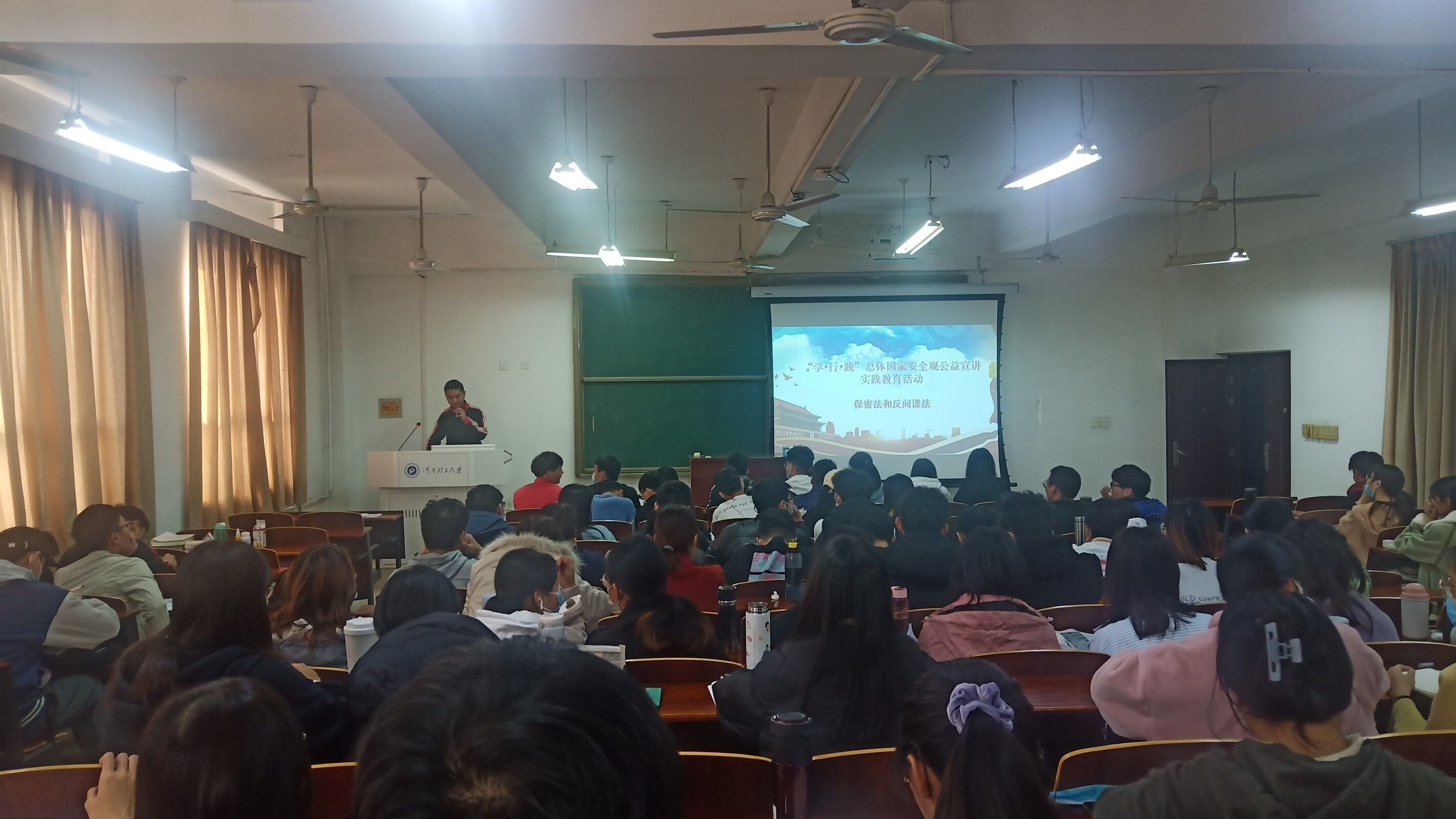 活动伊始,宣讲团成员欧健华首先根据《中华人民共和国保密法》《中华人民共和国反间谍法》进行了介绍,随后他从保密工作、保密安全形势、保密基本知识、保密法规教育、军队保密工作政策方针、泄密案例教育等六方面进行详细的讲解,通过分析当代老员工泄露国家秘密的具体事例,重点论述了构建保密安全屏障的重要性和急迫性。随后,欧健华从隐蔽性、莫测性、时间性三方面着重强调加强保密安全工作的重要性。他指出,在校老员工要加强学习保密安全知识、提高安全意识、建立保密安全思维、守好“安全防线”、筑牢“铜墙铁壁”,将保密安全知识牢记于心。最后,欧健华呼吁大家要充分学习国家关于保密工作的相关法律法规,深刻体会保密工作对于新形势下实现伟大梦想、进行伟大斗争、建设伟大工程、推进伟大事业的重要性。