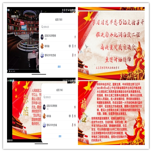 会议伊始,主讲人以“习近平主持召开推进南水北调后续工程高质量发展座谈会精神”和“学习中国共产党河南省第十一次代表大会精神”两方面展开本次学习内容。主讲人提到水是生存之本、文明之源。其中,党的十八大以来,南水北调是跨流域跨区域配置水资源的骨干工程。该工程为后续工程规划建设过程中提供了很多宝贵经验,继续科学推进试实施调水工程,要在全面加强节水、强化水资源刚性约束的前提下,统筹加强需求和供给管理。接着,主讲人领学“中国共产党河南省第十一次代表大会”主题《高举中国特色社会主义伟大旗帜,深入贯彻习近平总书记视察河南重要讲话重要指示,牢记领袖嘱托,践行初心使命,锐意改革创新,为确保高质量建设现代化河南、确保高水平实现现代化河南,谱写新时代中原更加出彩的绚丽篇章而努力奋斗》有关内容学习。站在历史交替的起点,面对前所未有的世界大变局,如何深入贯彻习近平总书记视察河南重要讲话、重要指示,确保工作始终沿着正确的方向推进,省第十一次党代会对此给出了符合时代命题的答案。