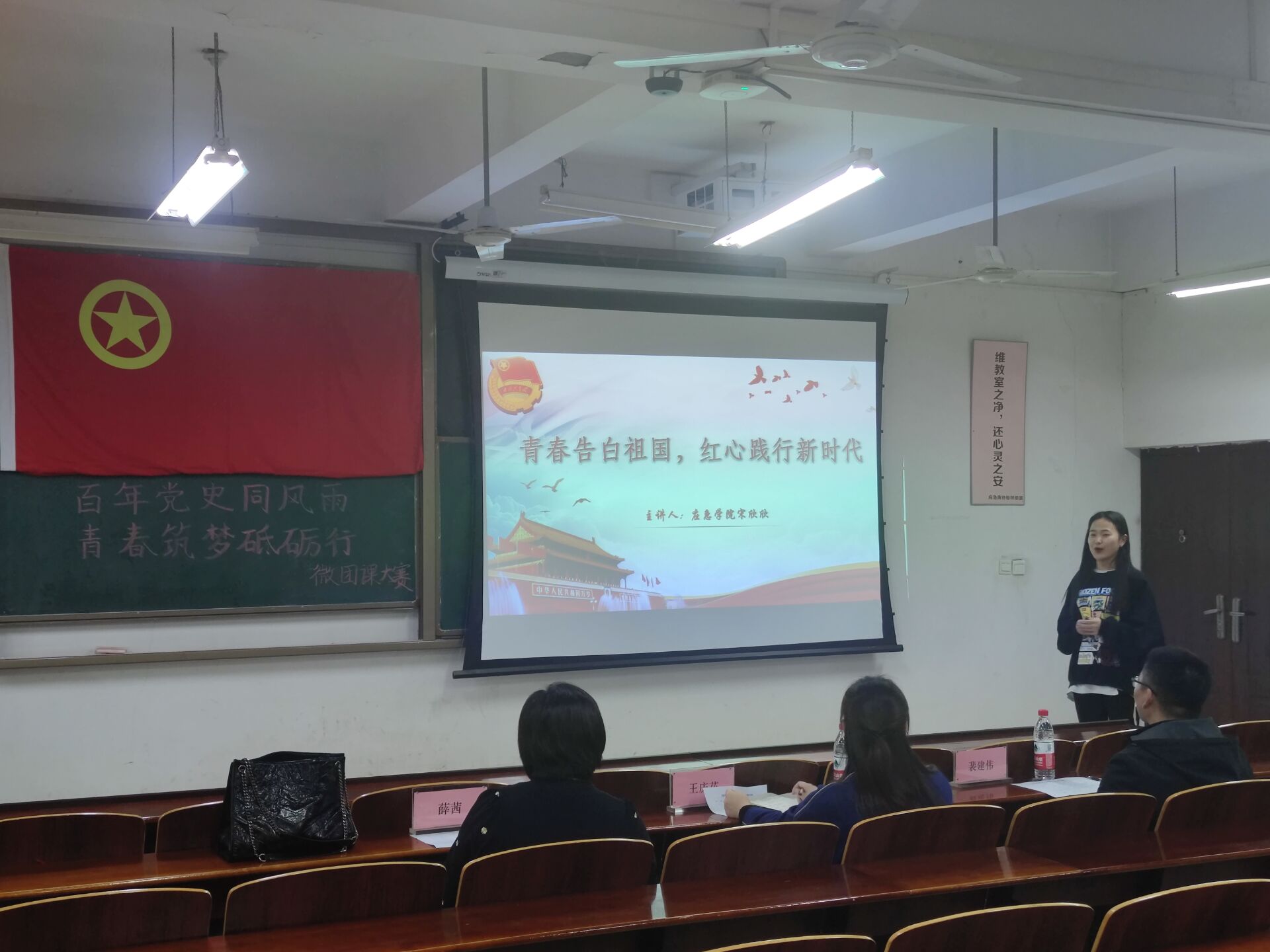 比赛过程中,参赛选手们或真情诉说,或慷慨宣言。他们紧紧围绕参赛主题,从模范人物、历史事件、红色精神等方面声情并茂地讲述,展现了新时代青年的满腔热血。同时,选手通过ppt演示、案例分析、视频展示等丰富多样的表现形式,为现场观众讲解了精彩的团课。其中,王盛颖同学的参赛作品《谁是最可爱的人》以边防战士为例,生动再现了战士们坚守边疆的革命热忱与感人至深的爱国情怀,高度赞扬了战士们的奉献精神、红色理想和纯真情感。