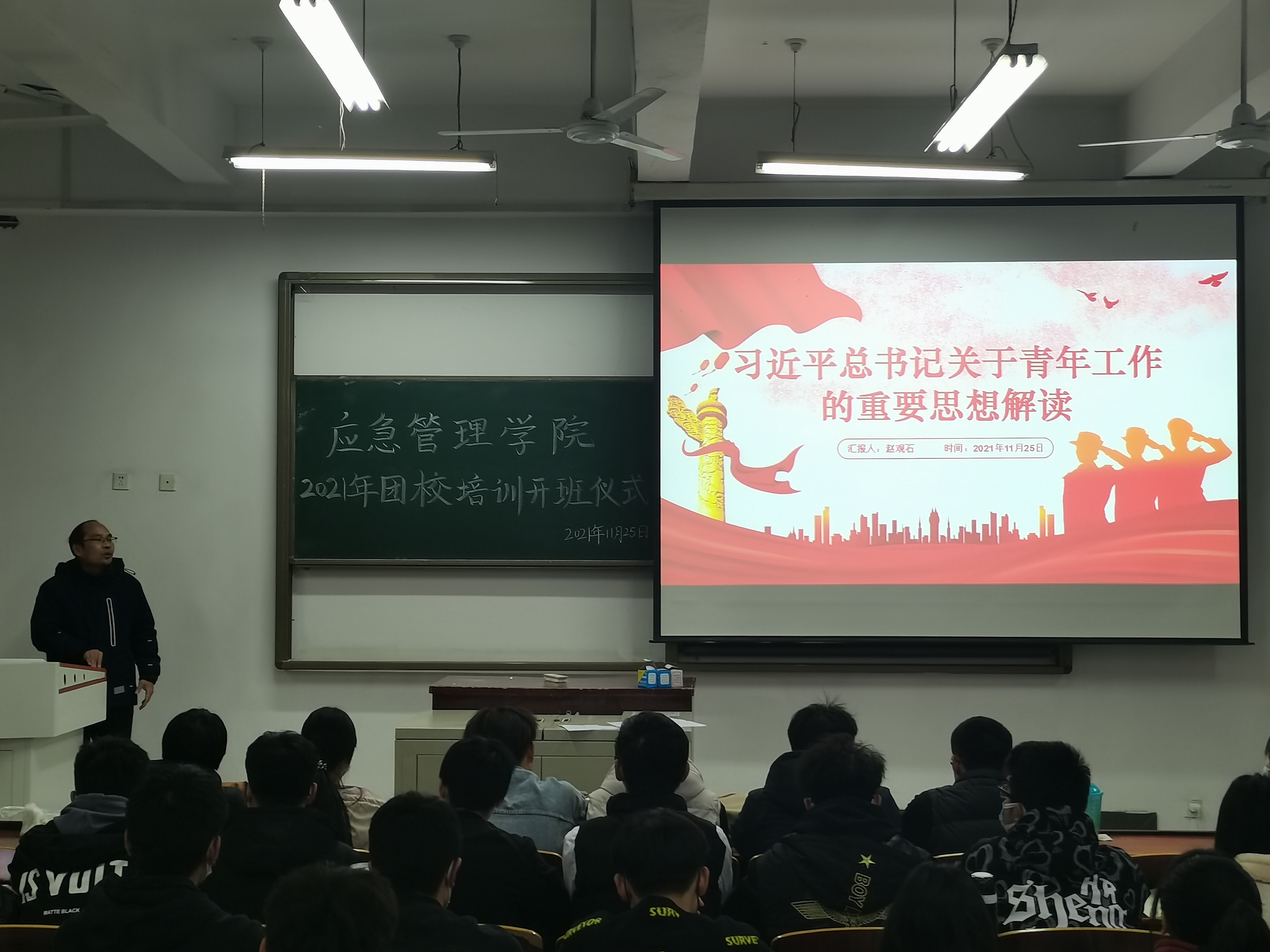 仪式上,祁义飞向与会人员对本期团校培训班的主要安排、考核方式以及纪律要求作出了详细的说明。仪式结束后,赵观石以“习近平总书记关于青年工作的重要思想解读”为题,为同学们带来了一场内容生动、意义深刻的专题讲座。他结合自身对习近平总书记关于青年工作的实践感悟,系统阐释了习近平总书记关于青年工作的重要思想的形成及深刻内涵,深刻分析了习近平总书记关于青年工作的重要思想的重大政治意义、理论意义和实践意义。他希望同学们在今后的学习与工作中深入学习领会习近平总书记重要讲话精神,在学懂弄通上下足功夫,不忘初心、牢记使命,以锐意进取的姿态做新时代的追梦者与圆梦人,勇立潮头建新功,奋发有为谋新篇,以青春共创美好未来,以奋斗圆梦最美中国。