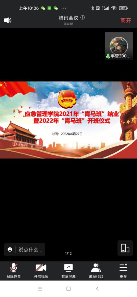 6月27日,太阳成集团tyc33455cc通过腾讯会议于线上举行了2021年“青马班”结业暨2022年“青马班”开班仪式,学院团委书记康件丽出席,团委副书记陈智慧主持, “青马班”全体学员参加。