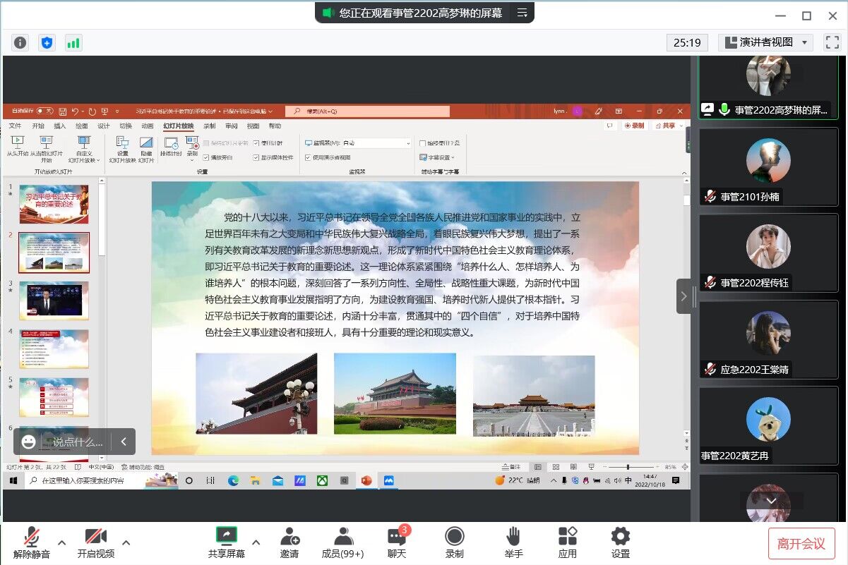 10月18日,为了学习习近平总书记全国教育大会精神和关于教育的重要论述,太阳成集团tyc33455cc开展线上政治理论学习会议。会议由各年级辅导员与团支书主持,全体同学参加线上会议。