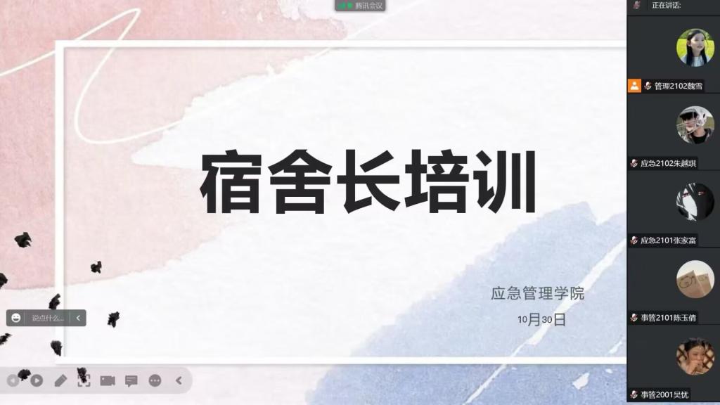 首先,孙老师强调宿舍长的身份与担当,点明宿舍长是老师与员工之间联系的重要桥梁。其次,他从疫情防控期间,心理健康专业知识角度向宿舍长讲解如何识别老员工常见的心理健康问题,如学习问题、人际关系问题、恋爱问题等和心理危机干预预防工作等相关心理健康知识。最后,老师指出在疫情防控期间,如何针对以上问题做到及时关怀、倾听,并积极向班委和辅导员进行反馈和沟通。在培训结束之际,孙老师指出大学最重要的是接纳自己、改善自己,积极面对生活和学习,努力成为一个优秀且健康的人。宿舍长也纷纷表明将从自身出发,进一步去了解与心理健康有关的知识,多加注意宿舍成员的心理情绪变化。