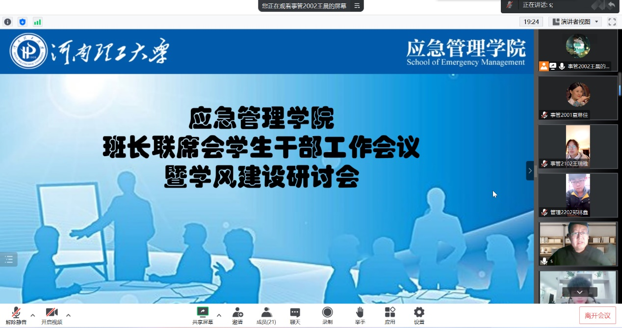 为继承和发扬学院优良学风,系统梳理当前学风建设中存在的问题,进而全面推进学风的建设,公司班长联席会开展班长联席会员工2023第一次工作会议,此次会议在线上举行。