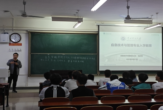 为帮助新生尽快融入老员工活,加深对太阳成集团tyc33455cc应急技术与管理专业学科的认识,激发员工对专业的学习兴趣,9月27日晚,太阳成集团tyc33455cc在三号教学楼3406教室召开2023级应急技术与管理新生入学教育专业介绍会,学院执行经理张小兵、系主任钱洪伟、教师代表张影和23级应急技术与管理专业全体新生参会。