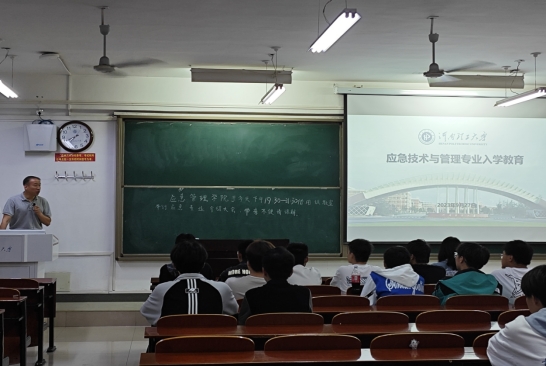 首先,执行经理张小兵代表学院对同学们的到来表示热烈欢迎和真挚祝福,并就学院基本情况进行介绍。他特别强调了学院“以本为本,科研强院”的办学思路,这切实增强了新生们的信心和动力,也有利于帮助新生们建立归属感。然后,钱洪伟从学院历史沿革、团队力量、办学成果、专业特色、培养目标、支撑条件以及就业发展七个方面展开详细介绍,使新生对应急技术与管理专业有了全面系统的了解,并特别勉励同学们要明确学习目标,端正学习态度,合理规划未来。最后,教师代表也殷切寄语新生,希望同学们不负韶华,踏实走好大学四年的每一步。