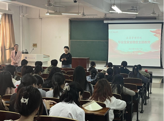 会上,任华传达了学校关于毕业生安全稳定工作的相关精神,并表示学院将全力以赴为毕业生营造一个和谐安全的环境,确保毕业生平安顺利完成学业。接着,杨笑冰强调了毕业生安全稳定工作的重要性,并从意识形态、宿舍安全、心理调试等方面勉励大家在日常考研学习过程中,关注自身的生命安全、财产安全和心理状况,提高自身安全防范意识。最后,任华对参会同学提出三点要求:一是要注意出行安全,减少意外事故的发生;二是要提高安全警惕,谨防电信诈骗;三是要注意宿舍安全,做到“离宿报备,去向清晰”。会议结束后,同学们纷纷表示,将牢固树立并自觉践行“安全第一”理念,做好自身安全“第一责任人”,提高安全防范能力。