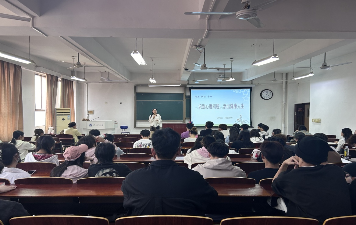 孙建华老师以《识别心理问题,活出健康人生》为题,通过列举身边的事例和提问互动的方式帮助同学们识别自身心理问题和养育健康心理的重要性,内容丰富多彩,通俗易懂。接着,孙老师重点阐述了界定心理健康的基本准则,给予了大家很好的启发和帮助,也让同学们学会了如何接纳情绪、调整思想、放松身心;同时帮助心理委员掌握心理问题识别技巧,及时有效地识别有潜在心理困扰的同学。最后,老师表示在学习、生活的压力下存在心理问题是正常的事情,同学们要正视心理问题,积极寻求自救或他救,从而在学习和生活中能够自如释放压力、获得阳光心态。