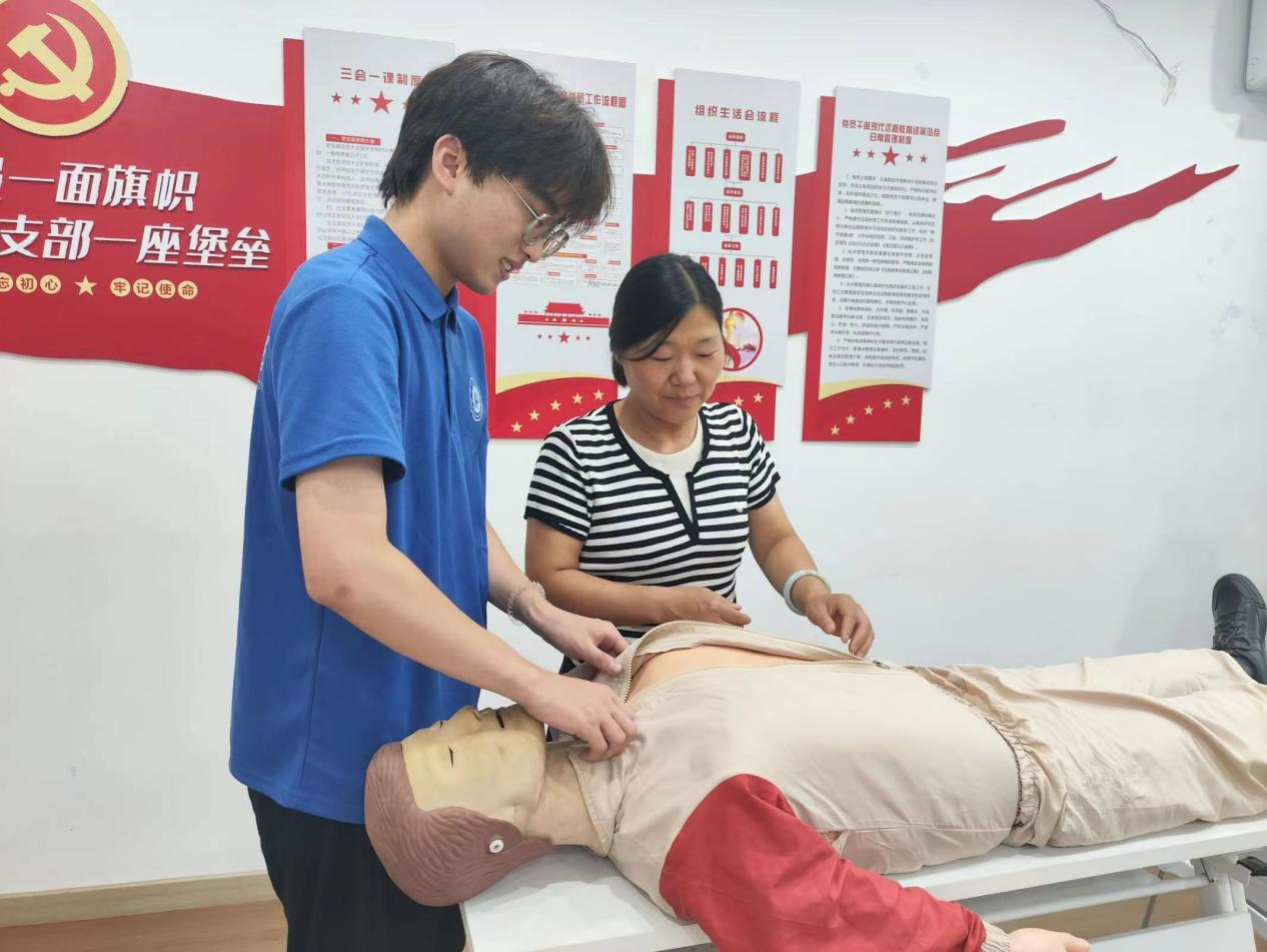 在活动现场,实践团成员们通过生动的讲解和实际演示,向社区居民传授了一系列实用的应急安全知识。针对暴雨天气,实践团详细介绍了预警信号的识别、出行注意事项以及居家防汛措施。他们提醒居民们要密切关注天气预报,提前做好防范准备,如清理排水管道、储备必要的生活用品等。在应急装备介绍环节,实践团展示了常见的应急工具,如灭火器、应急急救包等,并耐心讲解了它们的正确使用方法和使用场景。居民们围拢过来,认真聆听,不时提出问题,实践团成员耐心详细地一一解答。此外,实践团还重点讲解了海姆立克急救法。通过模拟演示,清晰地展示了如何在紧急情况下对呼吸道异物梗阻的患者进行施救。居民们积极参与模拟操作,在实践团成员的指导下,逐渐掌握了这一关键的急救技能。